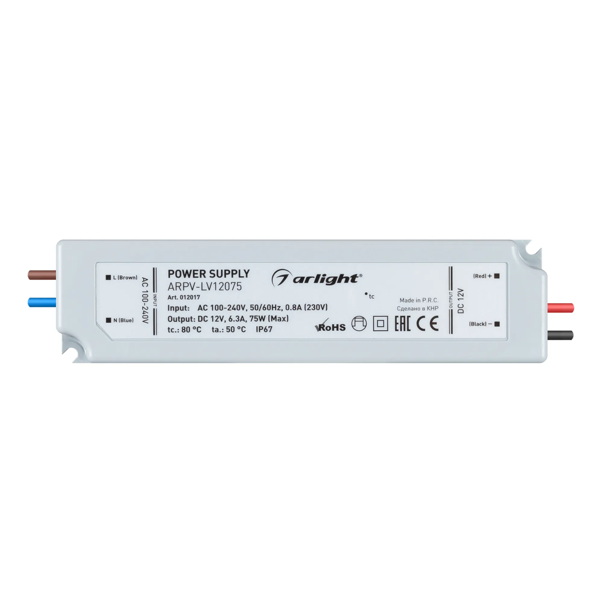Блок питания ARPV-LV12075 (12V, 6.3A, 75W) (Arlight, IP67 Пластик, 2 года)
