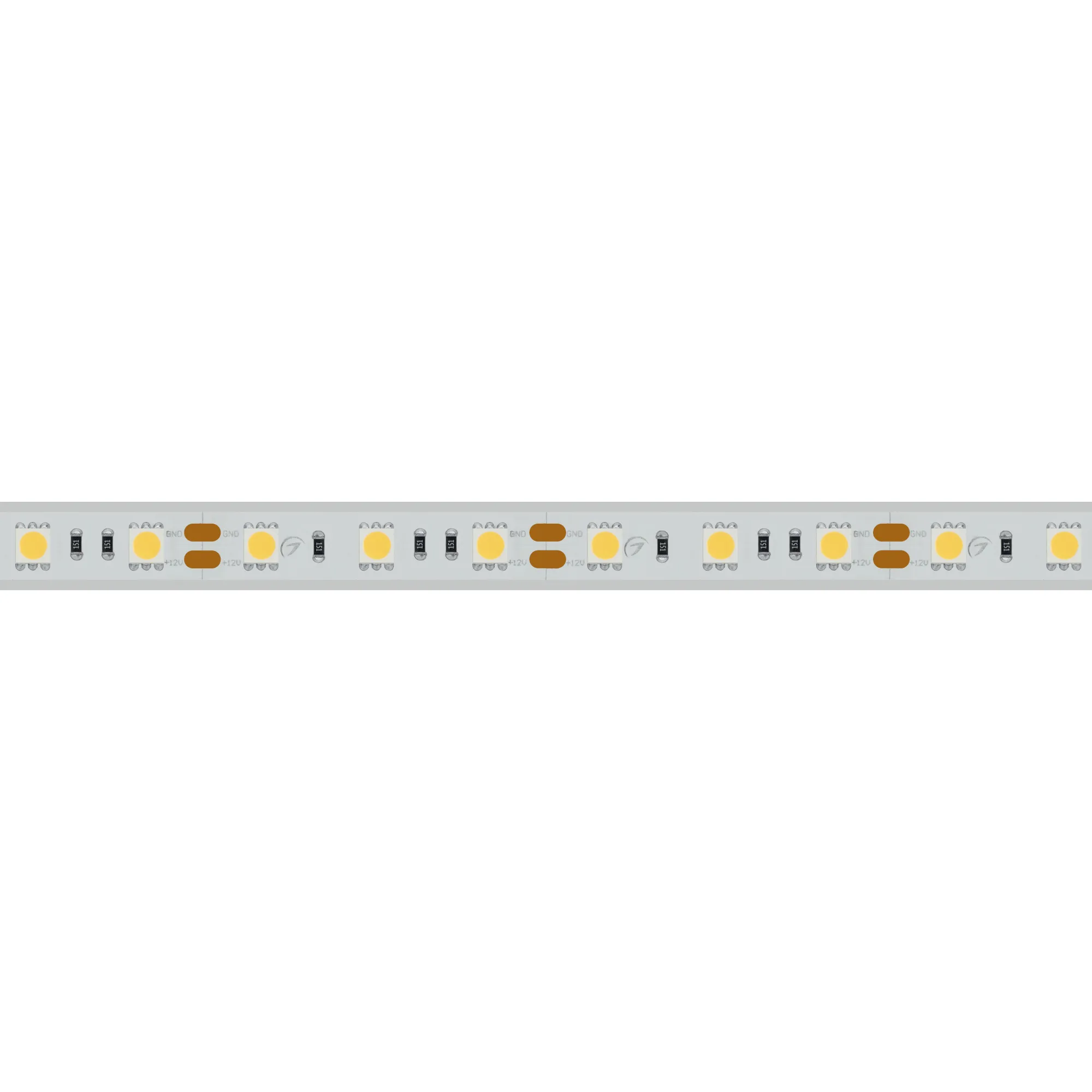 Гибкая лента LUX, герметичная IP67 (в силиконовой трубке с герметиком), светодиоды smd 5060, 60шт/м (300шт на 5м), красный скотч 3М. Цвет ТЁПЛЫЙ 2750-3250K. Питание 12V, мощность 14.4 Вт/м (72 Вт на 5м), угол 120°, цветопередача CRI>85. Размеры 5000х13x5.5мм. Мин.отрезок 50мм, 3шт светодиода. Пакет 5м. Цена за 1м. Заменяется на 034033.