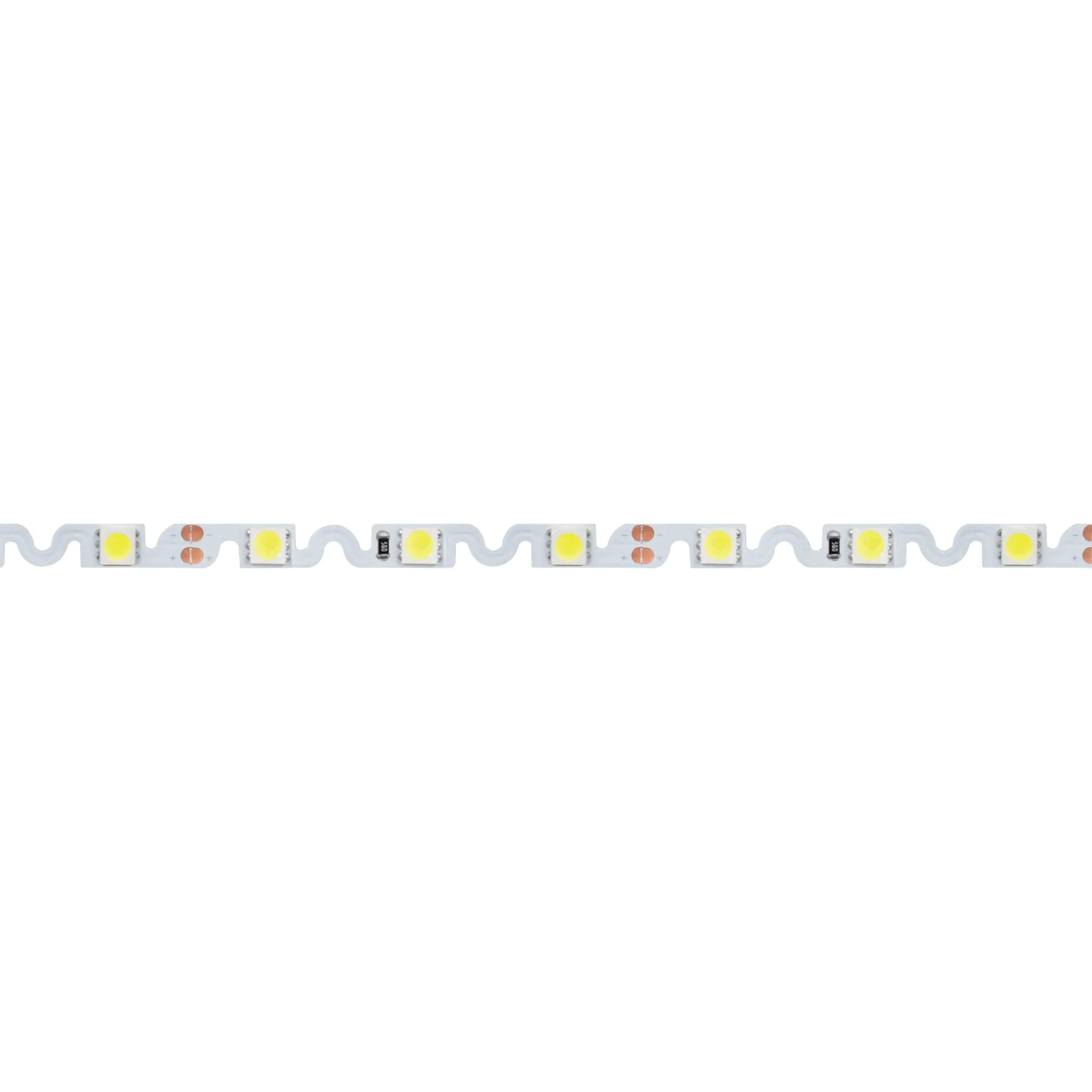 Гибкая лента с фигурной платой в форме волны, легко изгибается на плоскости. Светодиоды smd 5060, 48шт/м (240шт на 5м), белая плата 6.1мм, скотч 3М. Цвет ЖЁЛТЫЙ. Питание 12V, мощность 11.5 Вт/м (57.5 Вт на 5м), угол 120°. Размеры 5000х6.1х2.2мм. Мин.отрезок 62.5мм, 3 светодиода. Цена за 1м.