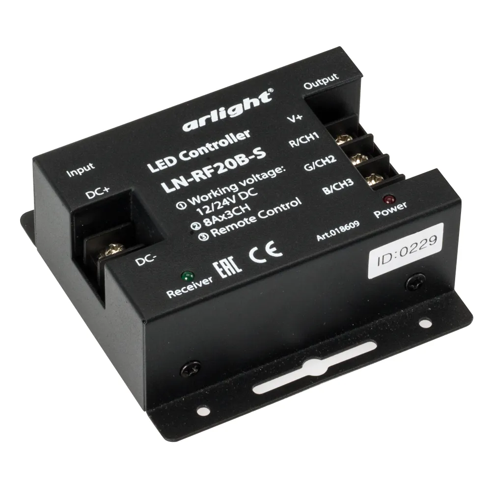 Наши специалисты знают все о продукции Arlight и с радостью помогут Вам выбрать комплектующие к товару "Контроллер LN-RF20B-S (12-24V, 288-576W, ПДУ 20кн) (Arlight, IP20 Металл, 1 год)", или другие товары из раздела "Комплекты RGB [12-24V]".
