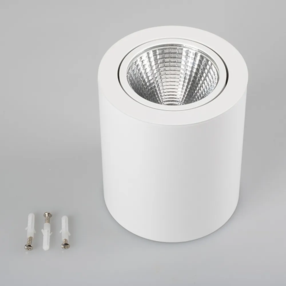 Накладной светильник 16Вт, белый корпус цилиндр. Цвет ДНЕВНОЙ БЕЛЫЙ 4000K, св.поток 1280-1440лм, CRI(Ra)>80, наклоняемая ось, угол 24°. Размер Ф120x140 мм. Питание AC 180-240V, 16Вт, встроенный драйвер (DC 400mA 37V).