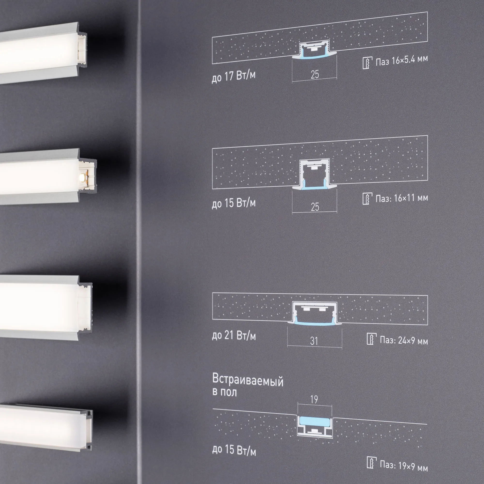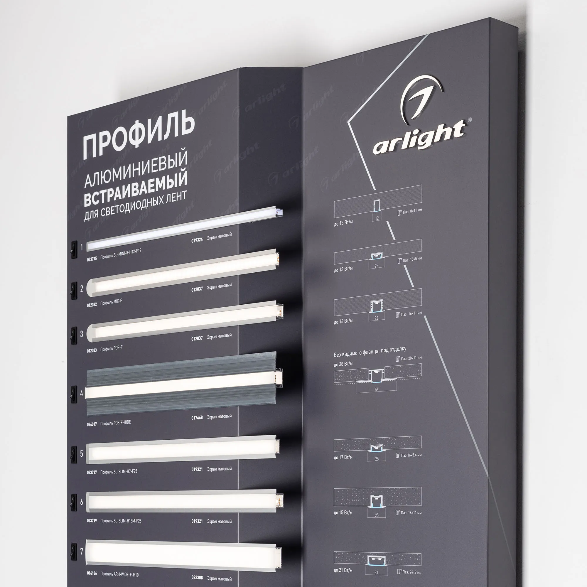 Стенд Алюминиевые Профили Встраиваемые со светодиодной лентой.