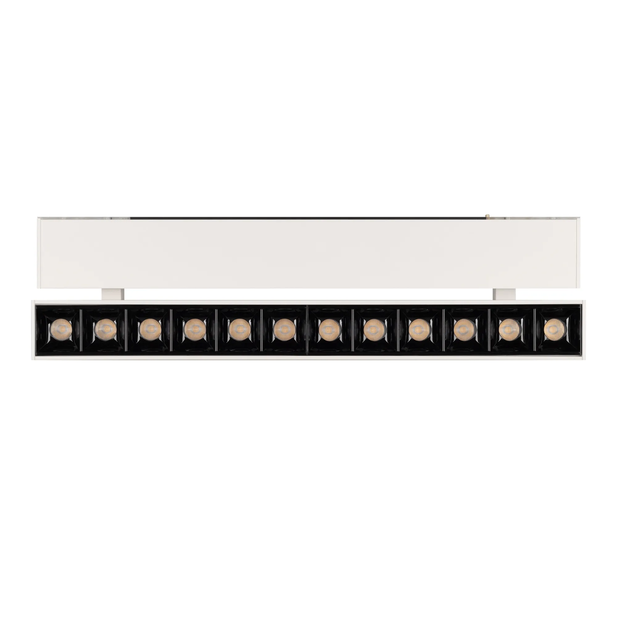 Светильник поворотный для магнитных треков шириной 45мм, 12Вт. Цвет свечения ТЕПЛЫЙ 3000K, световой поток 800лм, угол 15°, CRI>90. Корпус прямоугольный, металл, цвет белый, IP20. Размеры LxWxH 322x35x92.5мм. Входное напряжение DC24V, мощность 12Вт. Драйвер DС24V/AC230V поставляется отдельно. Диммируется только с 026407(1), 027633.