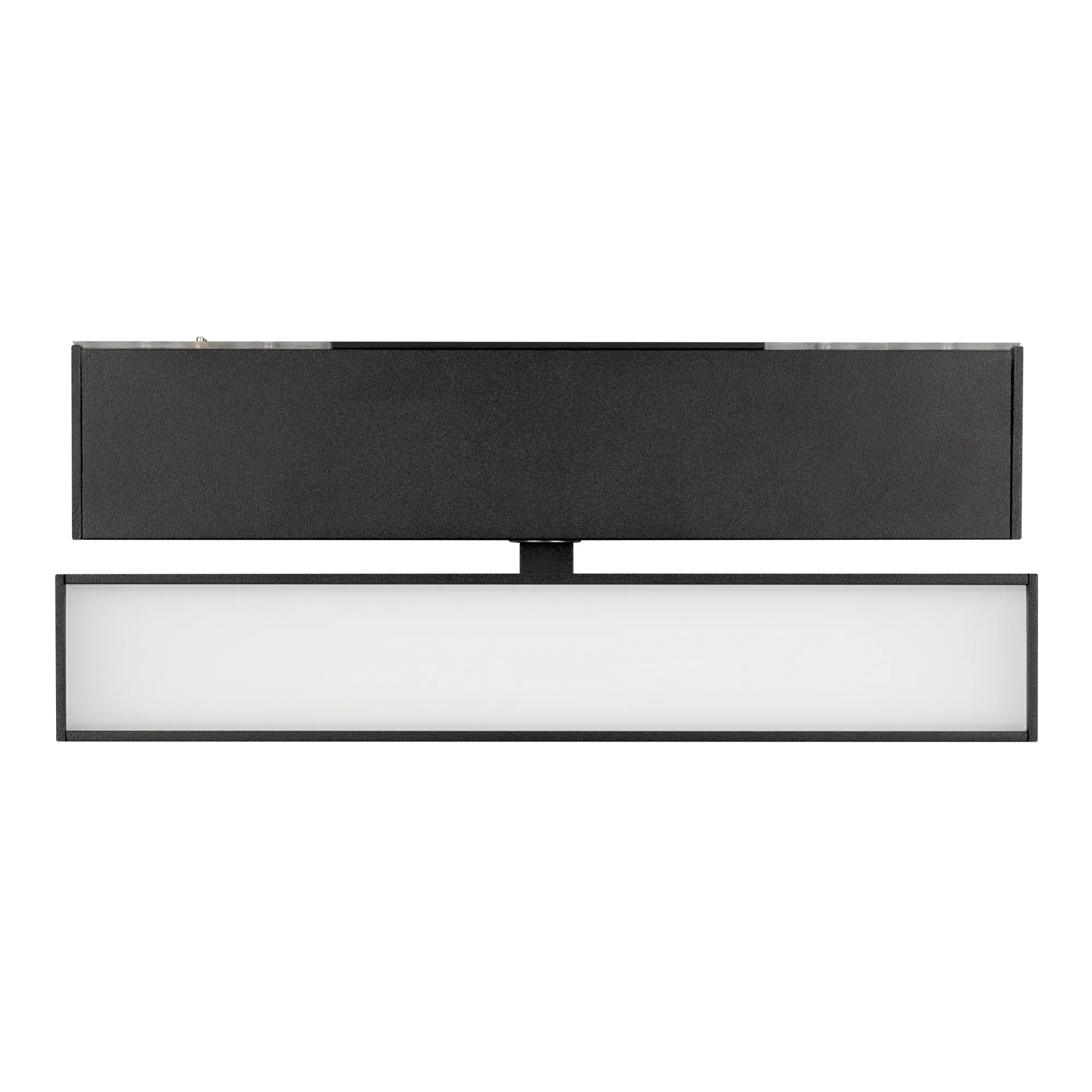 Светильник поворотный для магнитных треков шириной 45мм, 6Вт. Цвет свечения ДНЕВНОЙ 4000K, световой поток 650лм, угол 100°, CRI>90. Корпус прямоугольный, металл, цвет черный, IP20. Размеры LxWxH 204x35x92.5мм. Входное напряжение DC24V, мощность 6Вт. Драйвер DС24V/AC230V поставляется отдельно. Диммируется только с 026407(1), 027633.