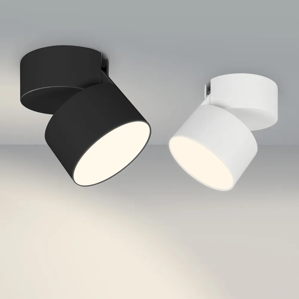 Накладной откидной светильник 16Вт, черный круглый корпус. Цвет ДНЕВНОЙ 4000K, св.поток 1120лм, CRI(Ra)>90, угол 110°. Размер светильника Ф95x55мм, размер чаши Ф95x45мм. Питание AC220-240V, 16Вт, драйвер встроенный (400mA, 30-42V). Поворачивается вокруг своей оси на 350° и отклоняется на 90°.Пульсация <0,3%