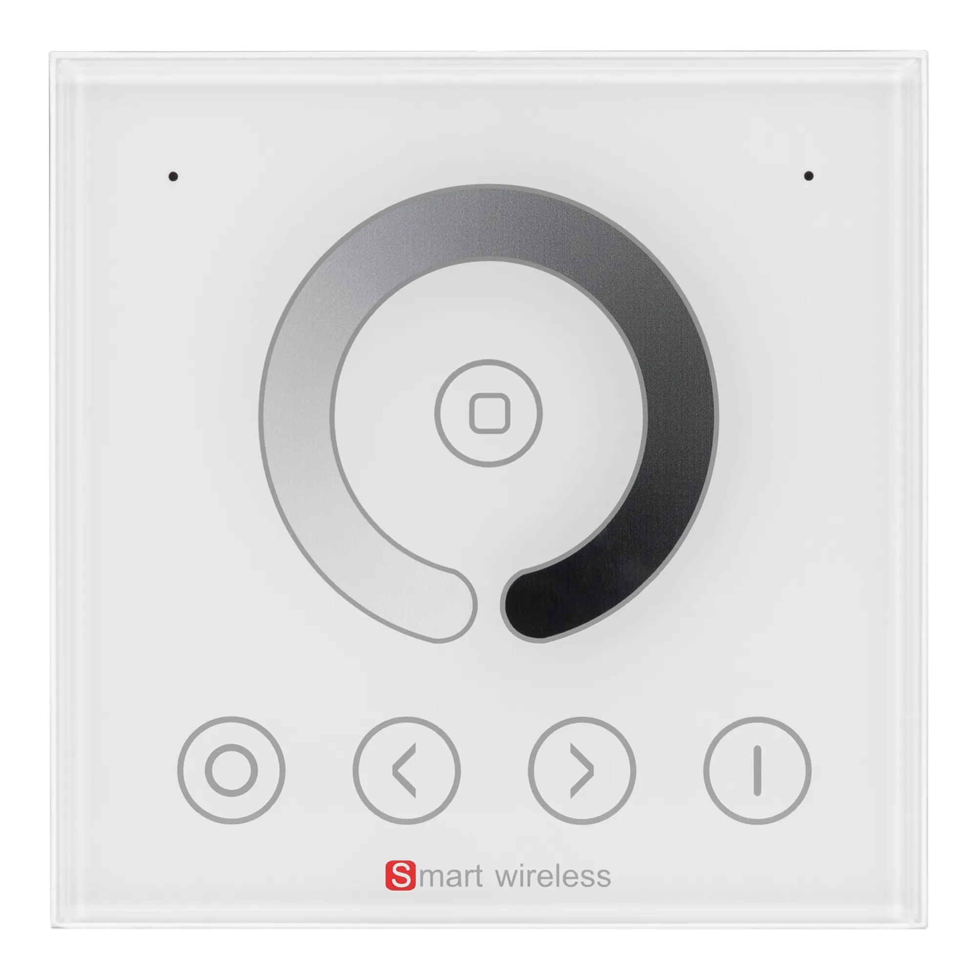 Встраиваемая сенсорная панель (Европейский стандарт) для управления одноцветными светодиодными лентами, цвет белый. 4 параллельных канала, питание DC 12-24V, ток нагрузки 4x4A, мощность нагрузки 192-384W. Габариты 86х86х33 мм.
