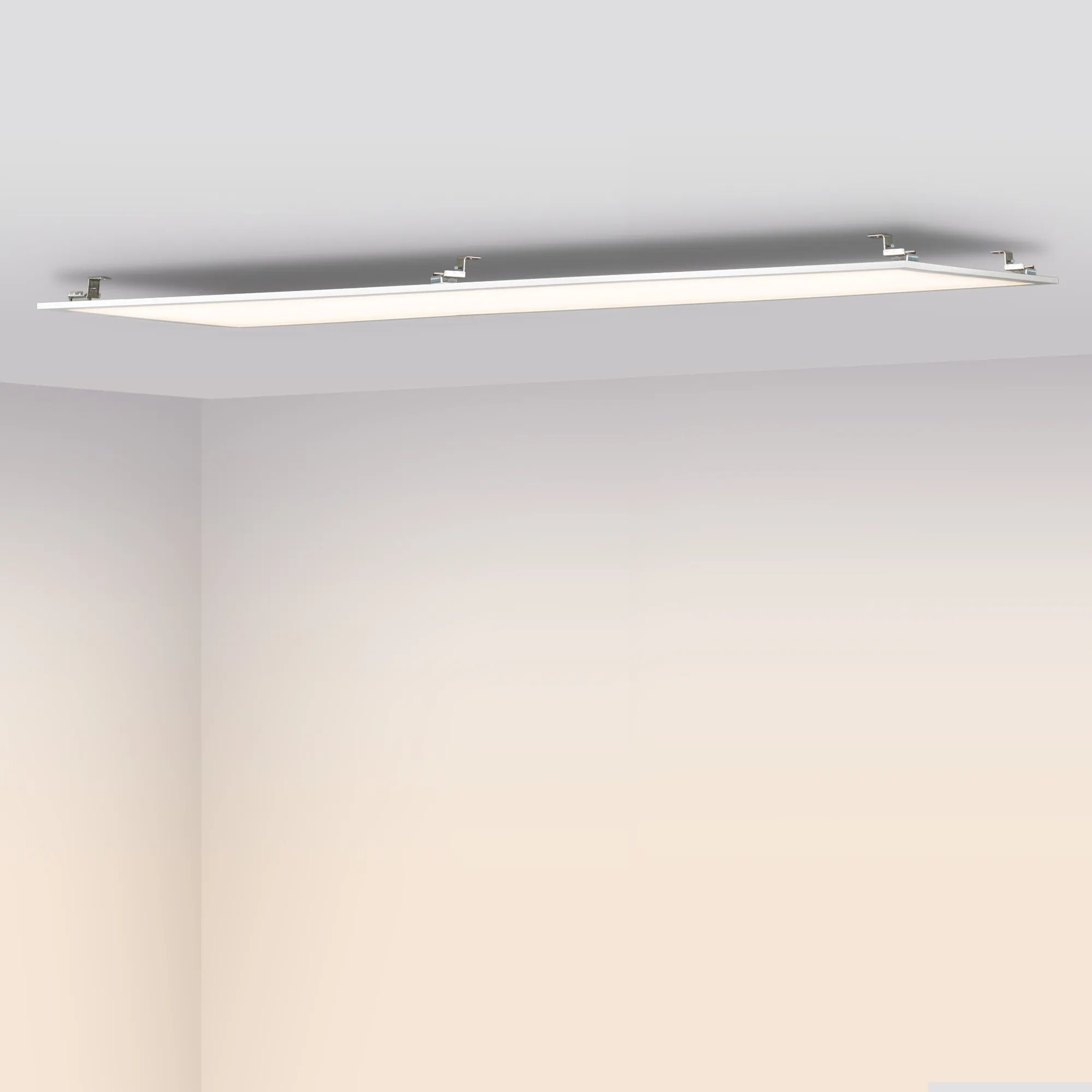 Светодиодная панель с торцевой заcветкой. Мощность 40 Вт, св. поток 3880 лм, 97 лм/Вт, белый 6000-7500 K, CRI>80, угол 120°, напряжение питания 230 В. Белый квадратный корпус из алюминия, экран PS, LGP PMMA, степень защиты IP40. Размер (Д×Ш×В) 1195×295×10,4 мм. Монтаж встраиваемый, установочное отверстие длина 1175 мм, ширина 275 мм. Драйвер 34.5-57.5 В, 700 мА, пульсация <5%.