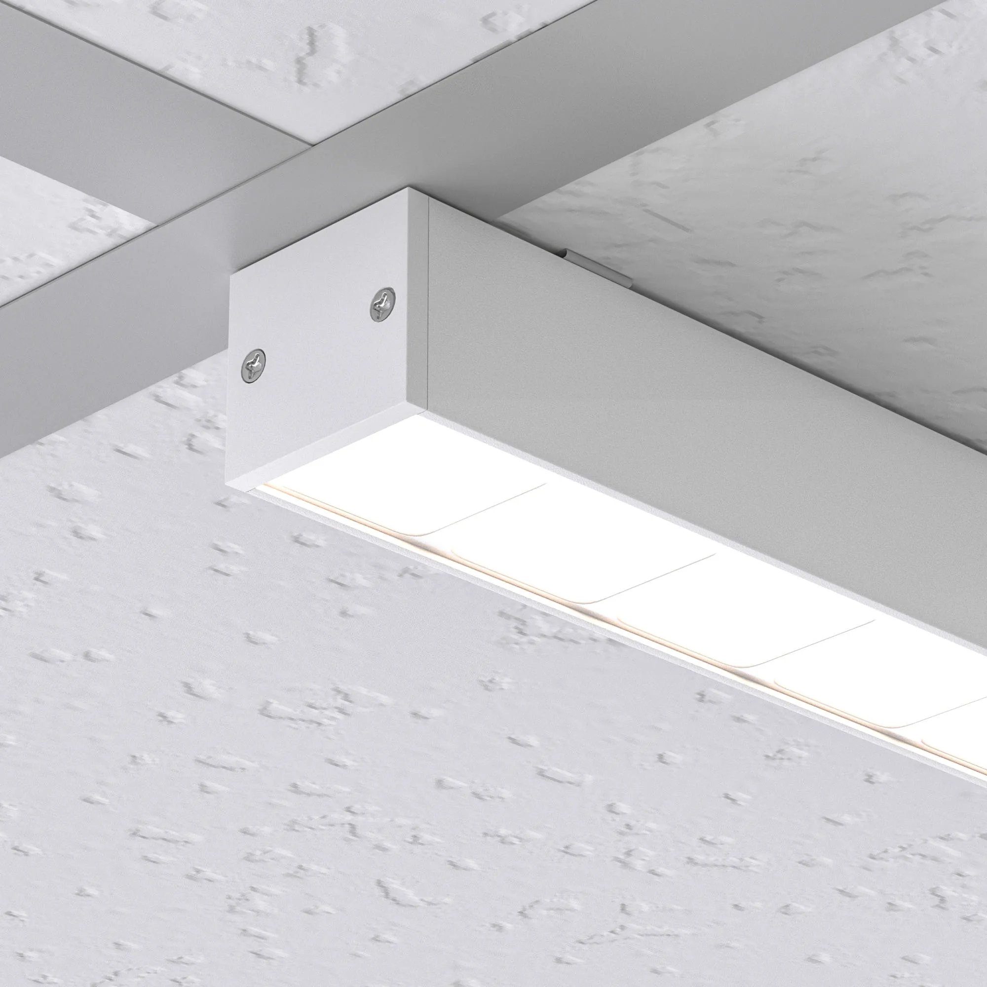 Светодиодный светильник для направляющих потолка Армстронг шириной 15 и 24 мм. Мощность 14 Вт, св. поток 1460 лм, 94 лм/Вт, теплый 3000K, CRI>80, угол 80°, напряжение питания 48 В. Белый квадратный корпус из алюминия, экран PC, степень защиты IP40. Размер: длина 600 мм, ширина 25 мм, высота 28 мм. Монтаж накладной. Драйвер поставляется отдельно.