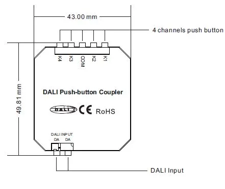 Миниатюрный встраиваемый конвертер DALI-2 для внешних кнопок, выключателей. Питание по шине DALI, 2.7mA, выход - сигнал DALI-2. входы кнопок свободного функционала. Назначение кнопок задается в мастер-контроллере серии DALI-LOGIC-x. 50х43х15мм
