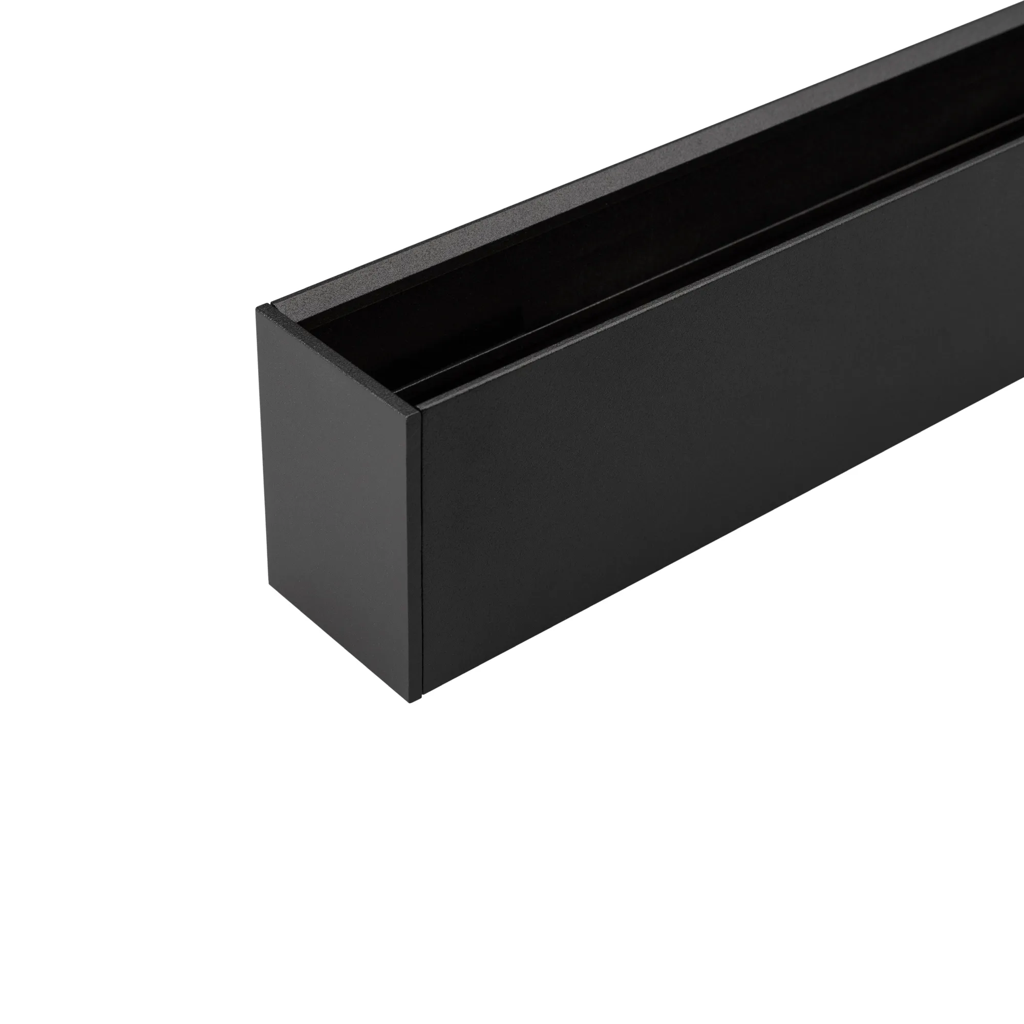 Подвесной, накладной, встраиваемый в нишу магнитный трек, длина 2000мм. DC24V. Материал алюминий, цвет черный. Две заглушки в комплекте. Размер ДxШxВ: 2000x45x63мм. Размер (с учетом заглушек) ДxШxВ: 2006x45x63мм. При встраиваемом монтаже установка в отверстие ДхШхВ 2007x46x63. Аксессуары для подвесного монтажа в комплект не входят. Цвет RAL9011