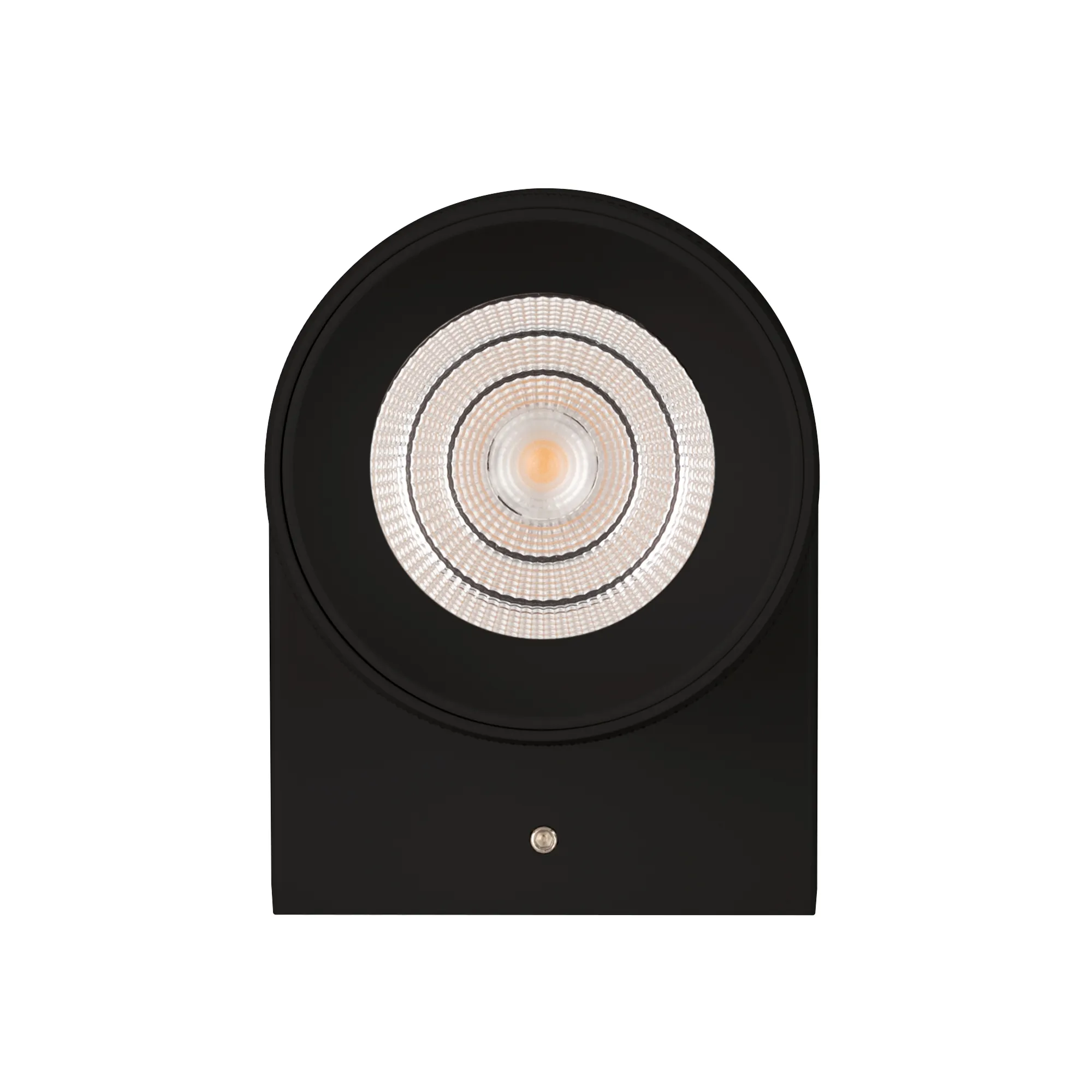 Настенный светильник со свечением в верхнюю или нижнюю полусферу. Мощность 6 Вт, св. поток 400 лм, 60 лм/Вт, дневной 4000 K, CRI>90, угол 40°, напряжение питания 230 В. Черный фигурный корпус из алюминия, степень защиты IP20. Размер: длина 110 мм, ширина 72 мм, высота 115 мм. Монтаж накладной. Драйвер 26-40 В, 150 мА, пульсация <1%.