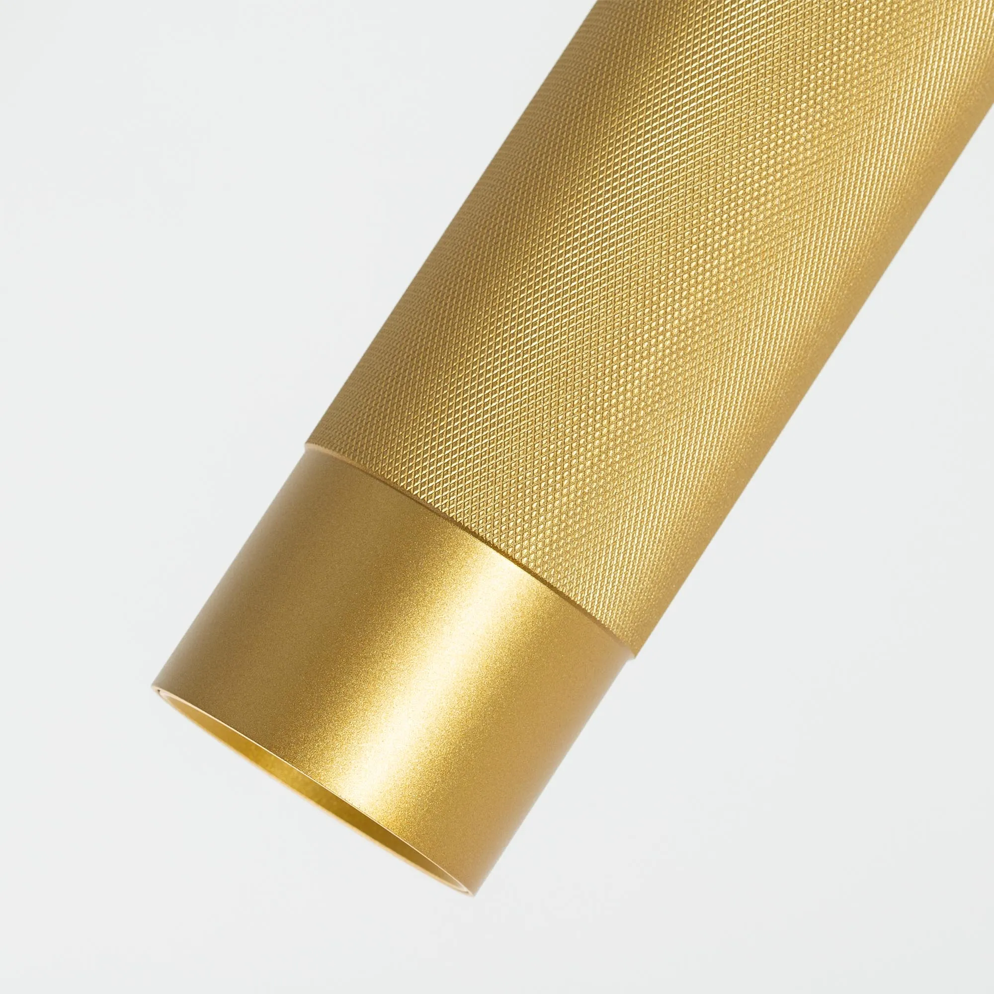 Подвесной светильник. Мощность 13 Вт, св. поток 732 лм, 57 лм/Вт, дневной 4000 K, CRI>90, угол 50°, напряжение питания 230 В. Золотой круглый корпус из алюминия, рефлектор PC, степень защиты IP20. Размер: диаметр 70 мм, высота 300 мм, длина подвеса 1500 мм, размер чаши: диаметр 65 мм, высота 30 мм. Монтаж подвесной. Драйвер 24-42 В, 300 мА, пульсация <1%.