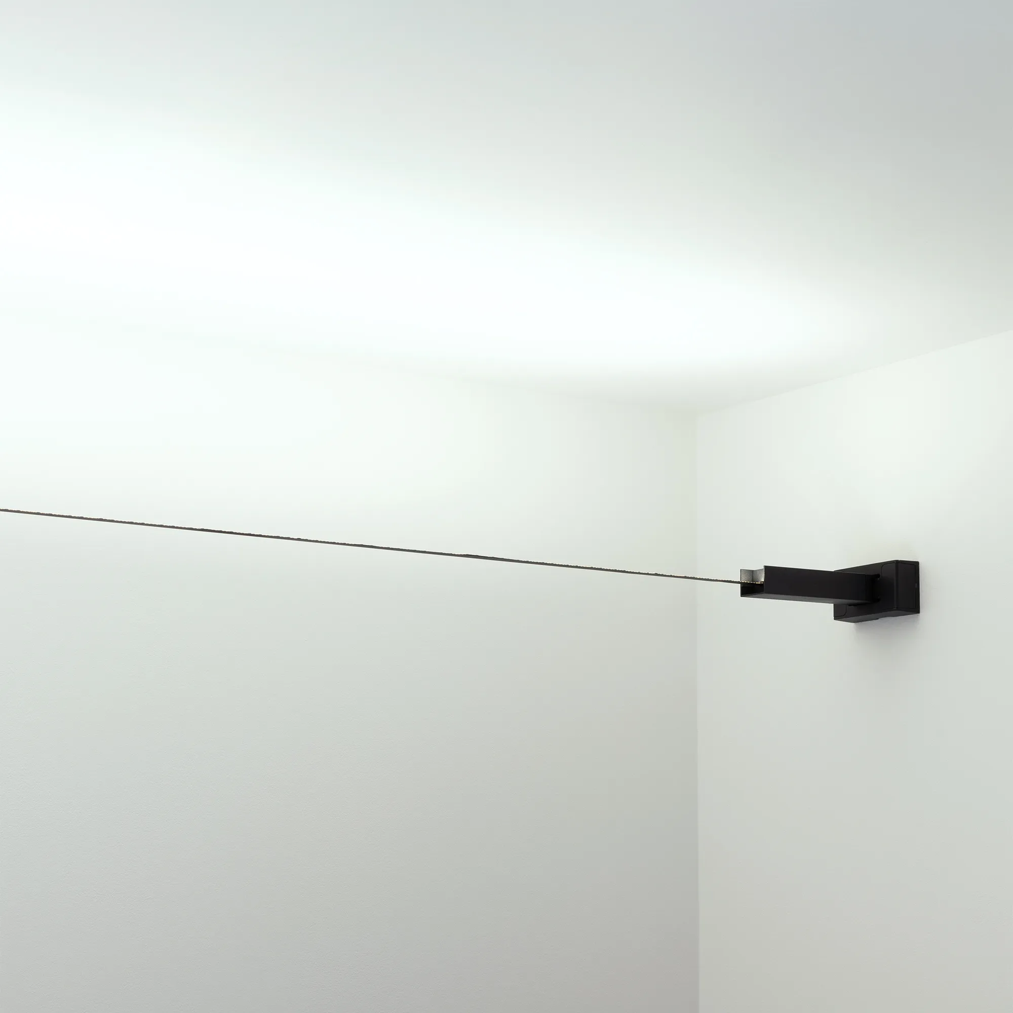 Лента-трос STINGRAY. В комплект входят: открытая светодиодная стабилизированная лента IC-A120, стальное полотно для ленты 10 м, ширина 15 мм, 2 настенных крепления, аксессуары для фиксации и монтажа. Цвет - черный.