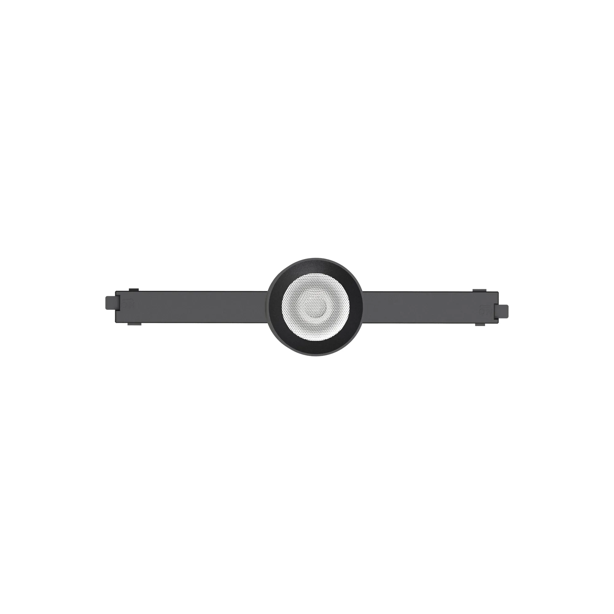 Светильник для магнитных треков MAG-ORIENT шириной 26 мм с управлением DALI. Мощность 12 Вт, св. поток 900 лм, 75 лм/Вт, дневной 4000 K, CRI>90, угол 24°, напряжение питания 48 В. Черный цилиндрический корпус из металл, степень защиты IP20. Размер: длина 204 мм, ширина 45 мм, высота 1518 мм, высота подвеса 1250мм. Размер светоизлучающего модуля: 45*250 мм. Монтаж на трек MAG-ORIENT. Пульсация <1%. UGR<16. Подвес регулируется.