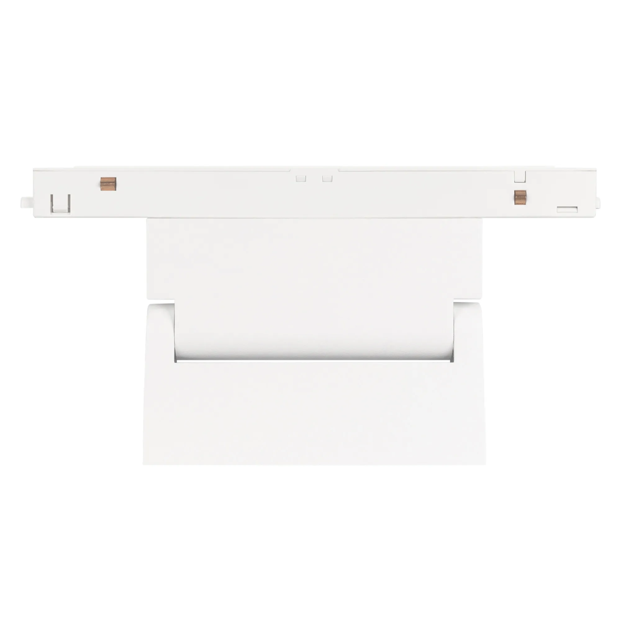 Светильник для магнитных треков MAG-ORIENT шириной 26 мм с управлением DALI. Мощность 6 Вт, св. поток 250 лм, 42 лм/Вт, дневной 4000 K, CRI>90, угол 30°, напряжение питания 48 В. Белый прямоугольный корпус из металл, экран поликарбонат, степень защиты IP20. Размер: длина 204 мм, ширина 23 мм, высота 104 мм. Монтаж на трек MAG-ORIENT. Пульсация <1%.