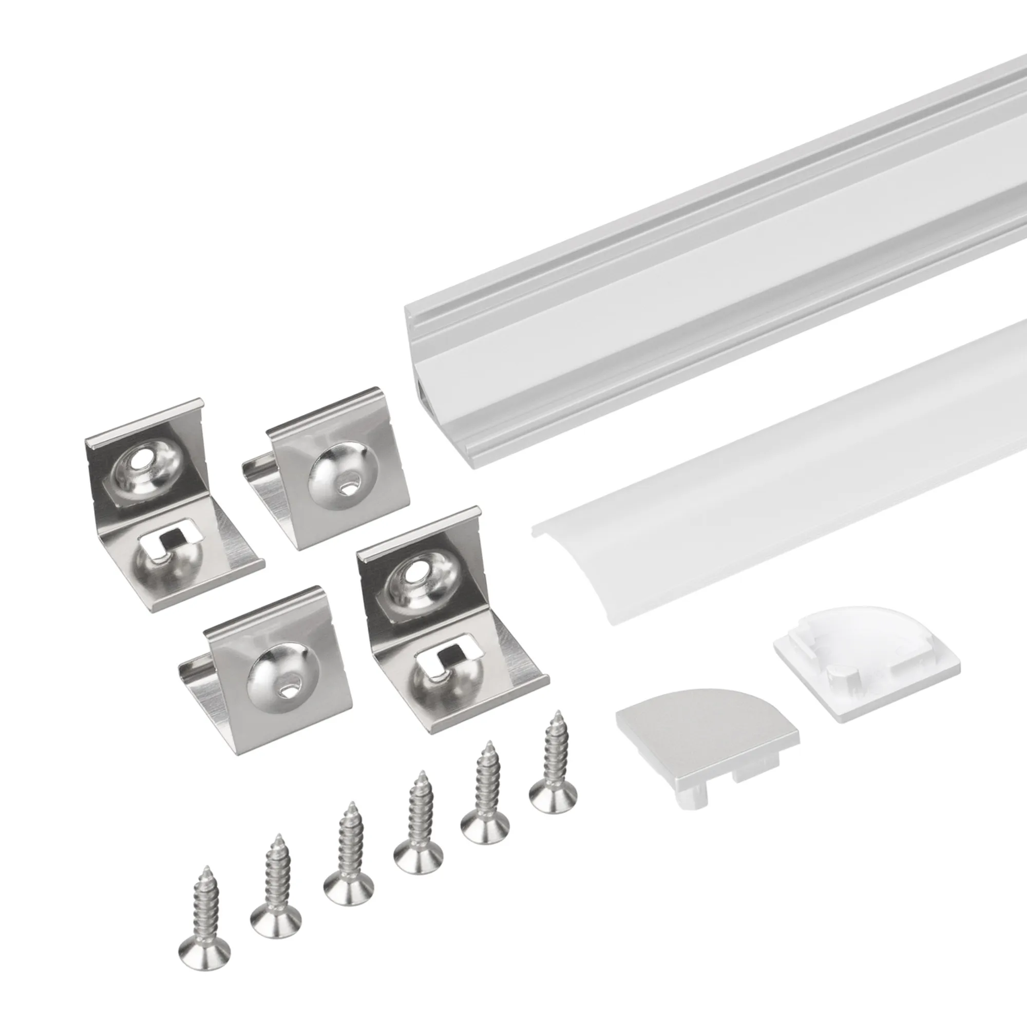 Комплект с круглым экраном. Алюминиевый анодированный угловой профиль для светодиодных лент и линеек. Габаритные размеры (L×W×H): 2000x16x16 мм. Ширина площадки для ленты 8 мм. Упакован в картонный тубус диаметром 27 мм.