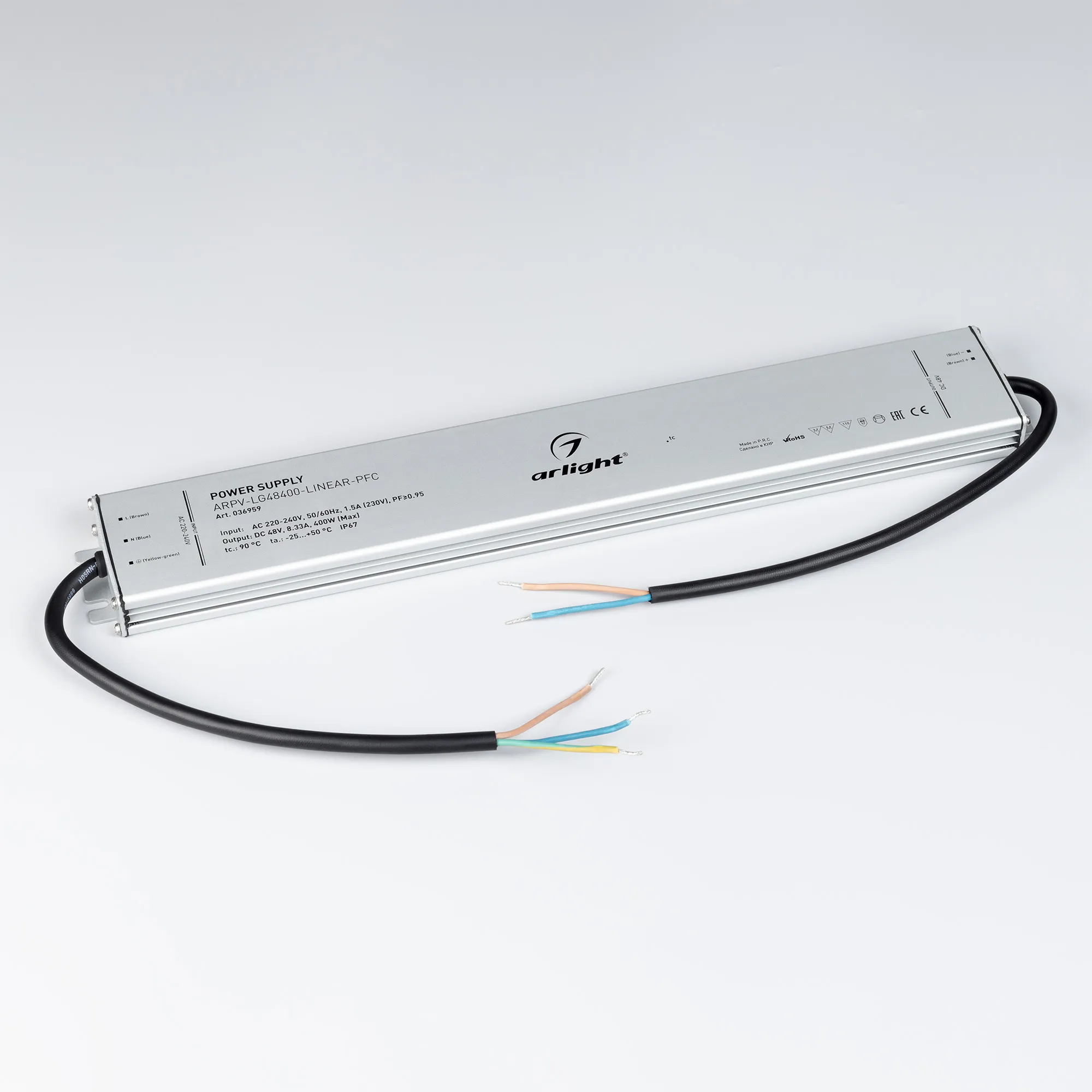 Наши специалисты знают все о продукции Arlight и с радостью помогут Вам выбрать комплектующие к товару "Блок питания ARPV-LG48400-LINEAR-PFC (48V, 8.33A, 400W) (Arlight, IP67 Металл, 5 лет)", или другие товары из раздела "герметичные с PFC [IP67, металл]".