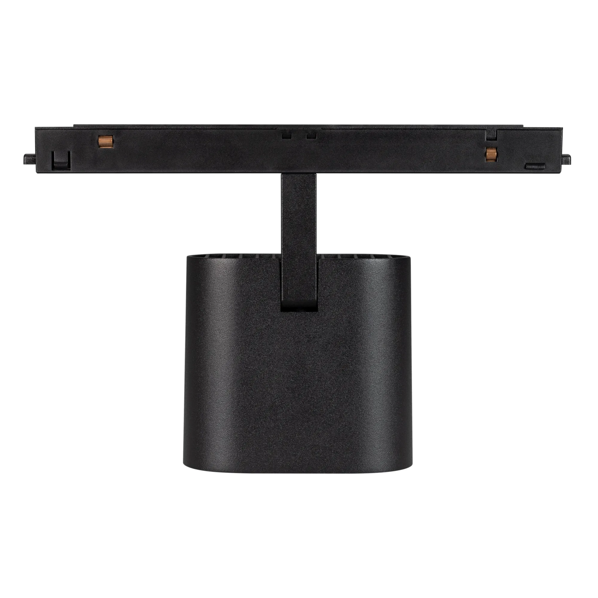 Светильник для магнитных треков MAG-ORIENT шириной 26 мм. Мощность 12 Вт, св. поток 900лм, 75 лм/Вт, теплый 3000 K, CRI>90, угол 40°, напряжение питания 48 В. Черный фигурный корпус из металл, экран поликарбонат, степень защиты IP20.Размеры LxWxH 204x89x140 мм. Монтаж на трек MAG-ORIENT. Пульсация <1%.