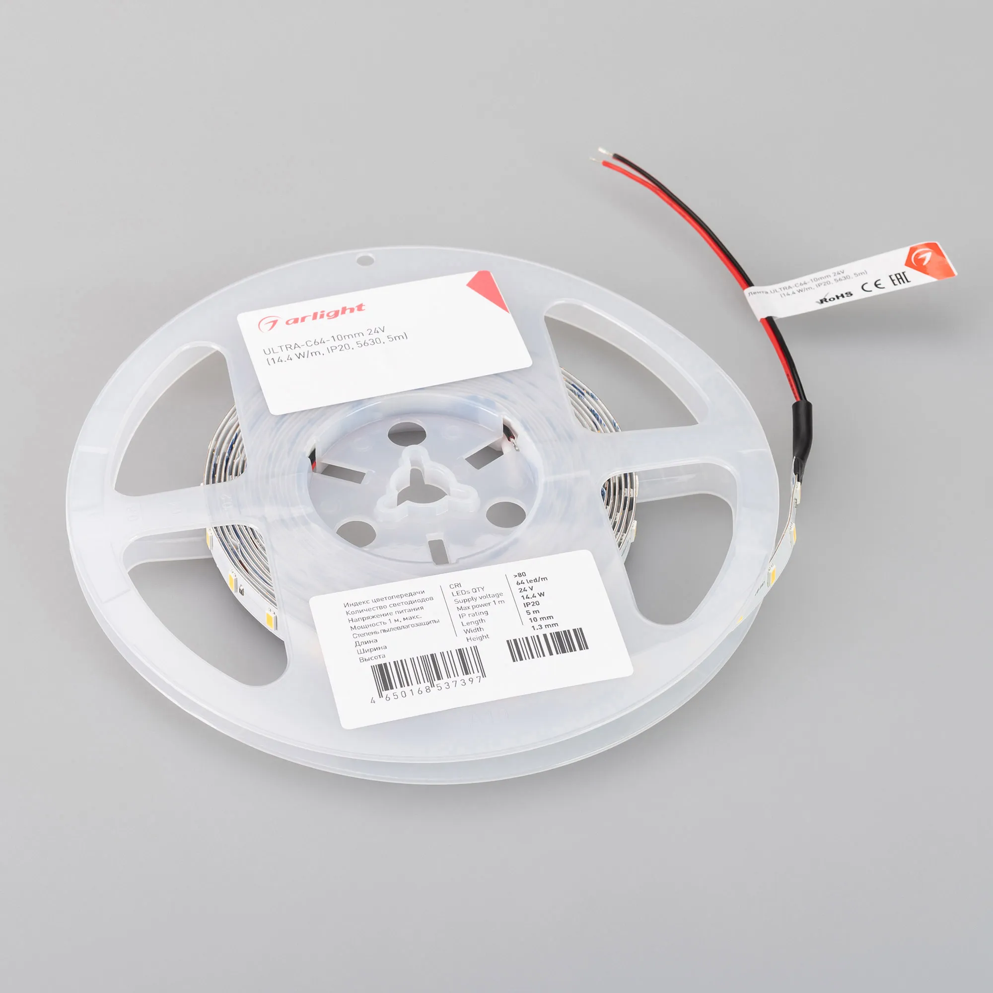 Лента светодиодная ULTRA-C64-10mm 24V Warm3000 (14.4 W/m, IP20, 5630, 5m) (Arlight, высок.эфф.160 лм/Вт)