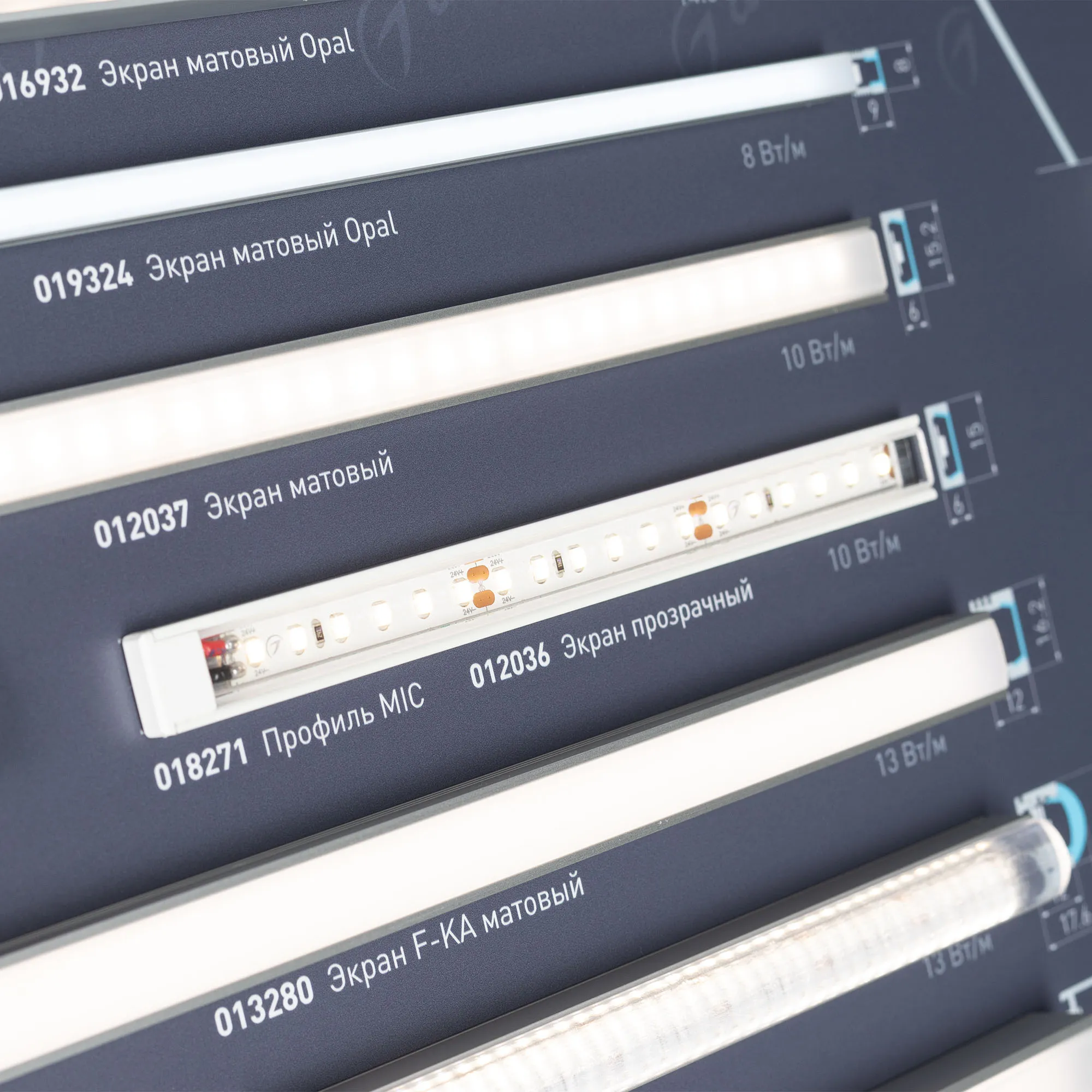 Накладные алюминиевые профили серий S-LUX, ALU, ARH с подсветкой. Материал - алюмобонд.