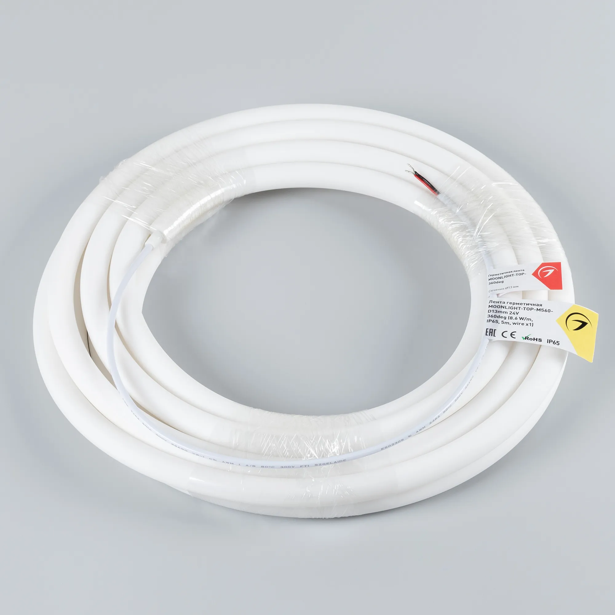 Лента светодиодная герметичная MOONLIGHT-TOP-M560-D13mm 24V Warm2300 360deg (8.6 W/m, IP65, 5m, wire x1) (Arlight, Вывод прямой, 3 года)