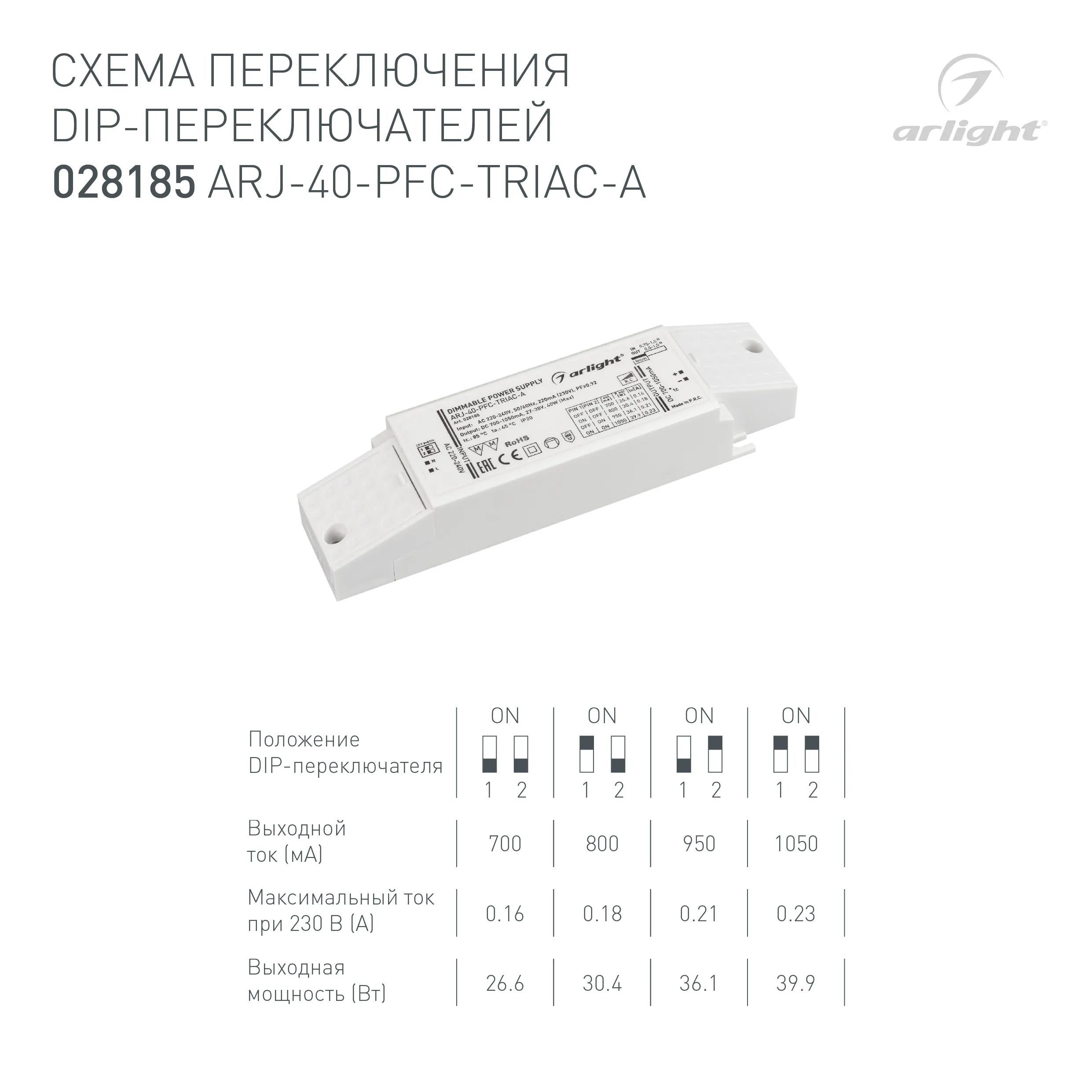 Блок питания ARJ-40-PFC-TRIAC-A (40W, 700-1050mA) (Arlight, IP20 Пластик, 5 лет)