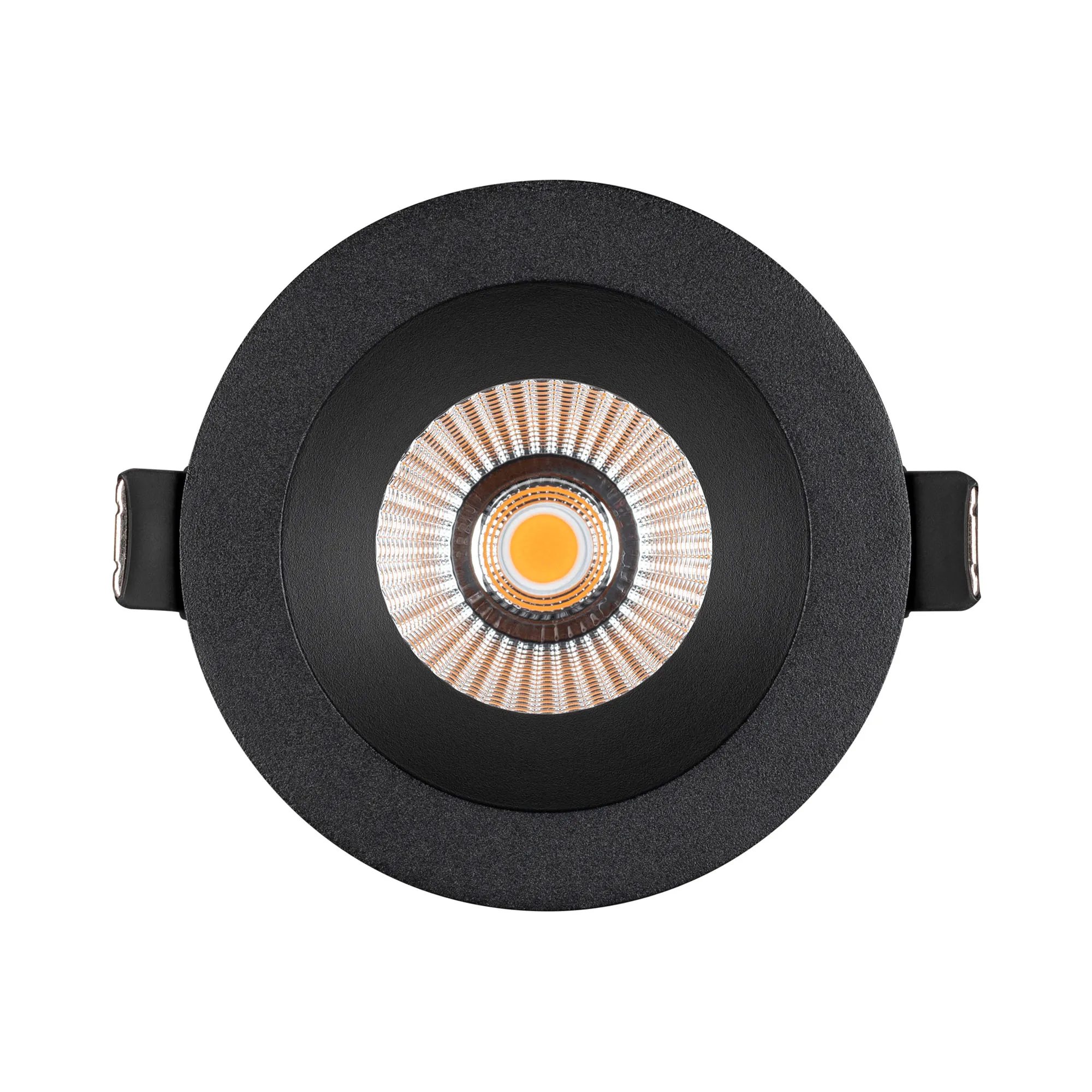 Встраиваемый светильник даунлайт. Мощность 10 Вт, св. поток 910 лм, 90 лм/Вт, дневной 4000 K, CRI>90, угол 36°, напряжение питания 230 В. Чёрный круглый корпус из алюминия, экран PMMA, степень защиты IP54. Размер: диаметр 86 мм, высота 80 мм. Монтаж встраиваемый, установочное отверстие: диаметр 80 мм. Драйвер IP54, 20-40 В, 250 мА, пульсация <1%.
