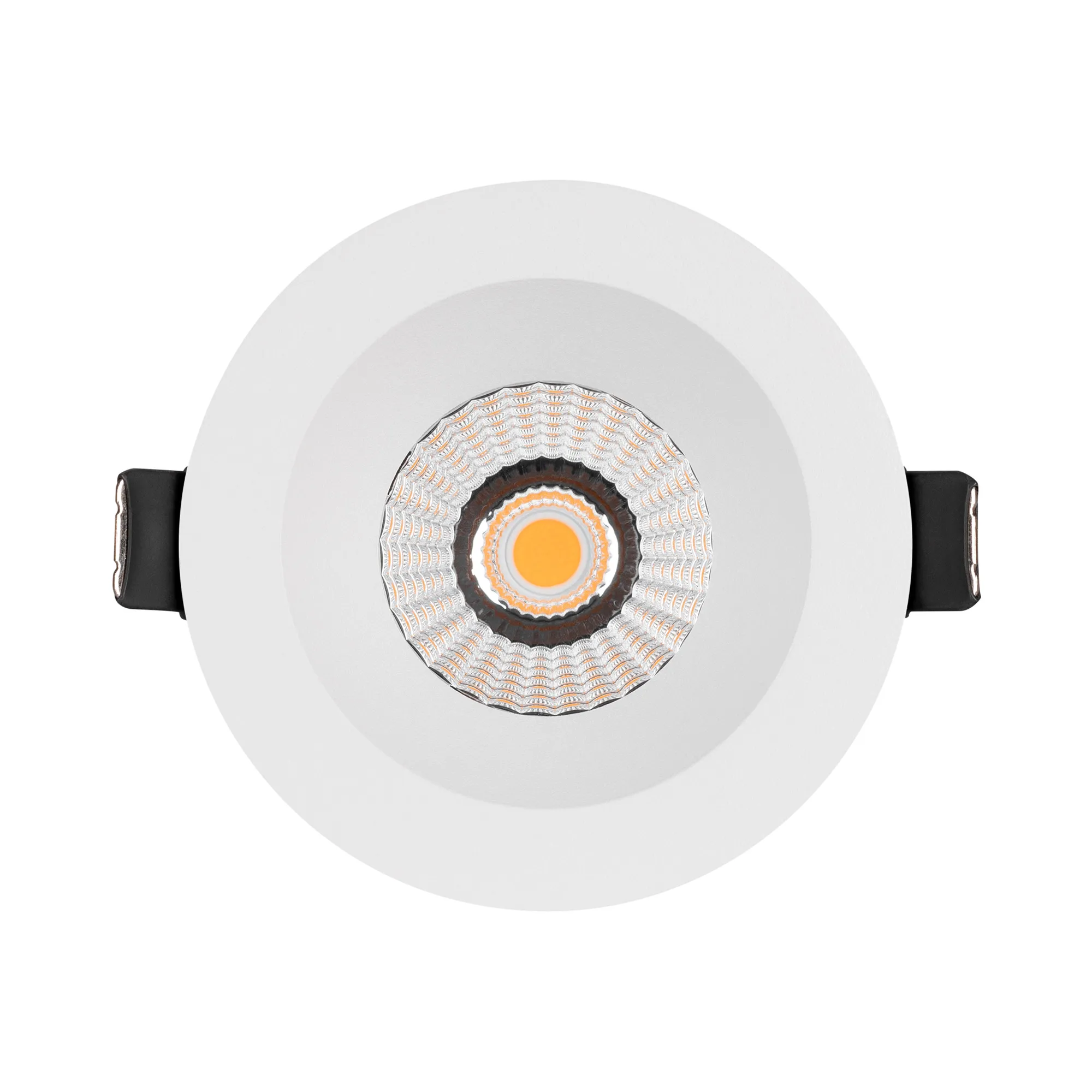 Встраиваемый светильник даунлайт. Мощность 10 Вт, св. поток 910 лм, 90 лм/Вт, дневной 4000 K, CRI>90, угол 60°, напряжение питания 230 В. Белый круглый корпус из алюминия, экран PMMA, степень защиты IP54. Размер: диаметр 86 мм, высота 80 мм. Монтаж встраиваемый, установочное отверстие: диаметр 80 мм. Драйвер IP54, 20-40 В, 250 мА, пульсация <1%.
