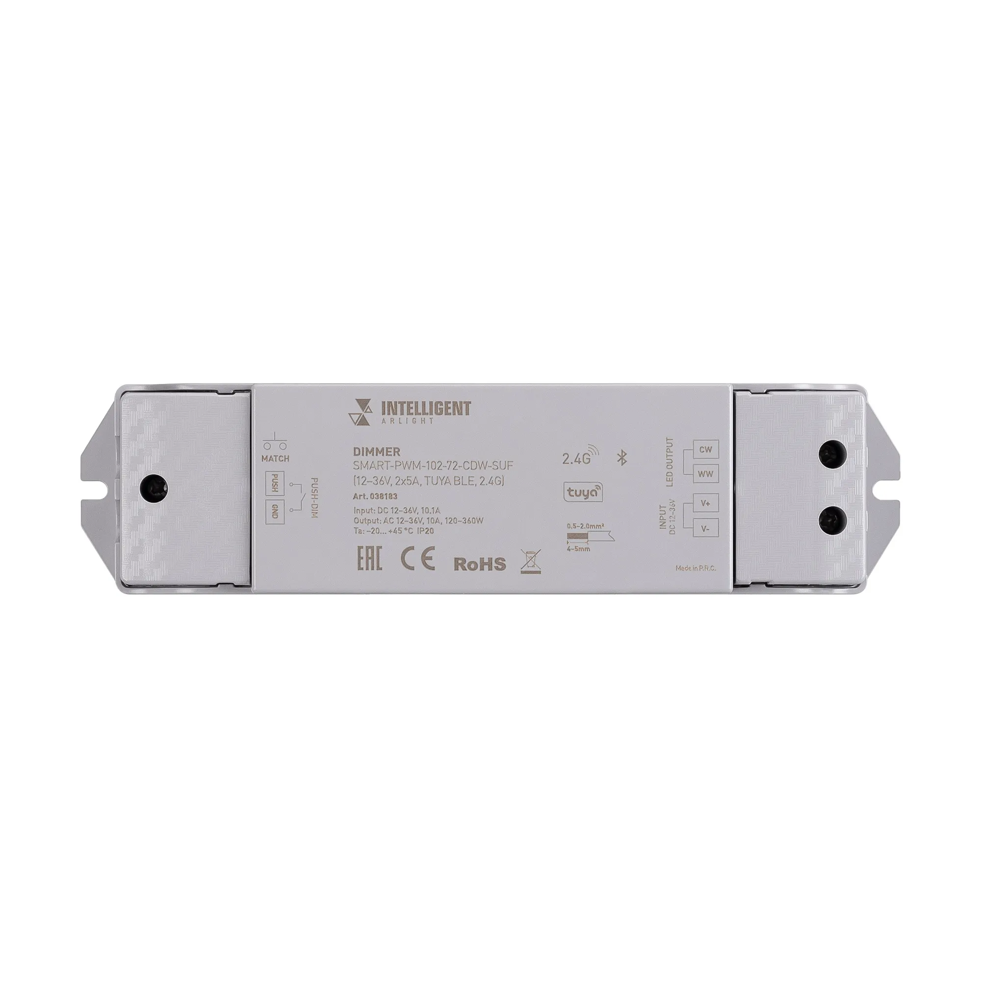 В магазине Мельковский Свет Вы можете купить "INTELLIGENT ARLIGHT Диммер SMART-PWM-102-72-CDW-SUF (12-36V, 2x5A, TUYA BLE, 2.4G) (IARL, IP20 Пластик, 5 лет)"