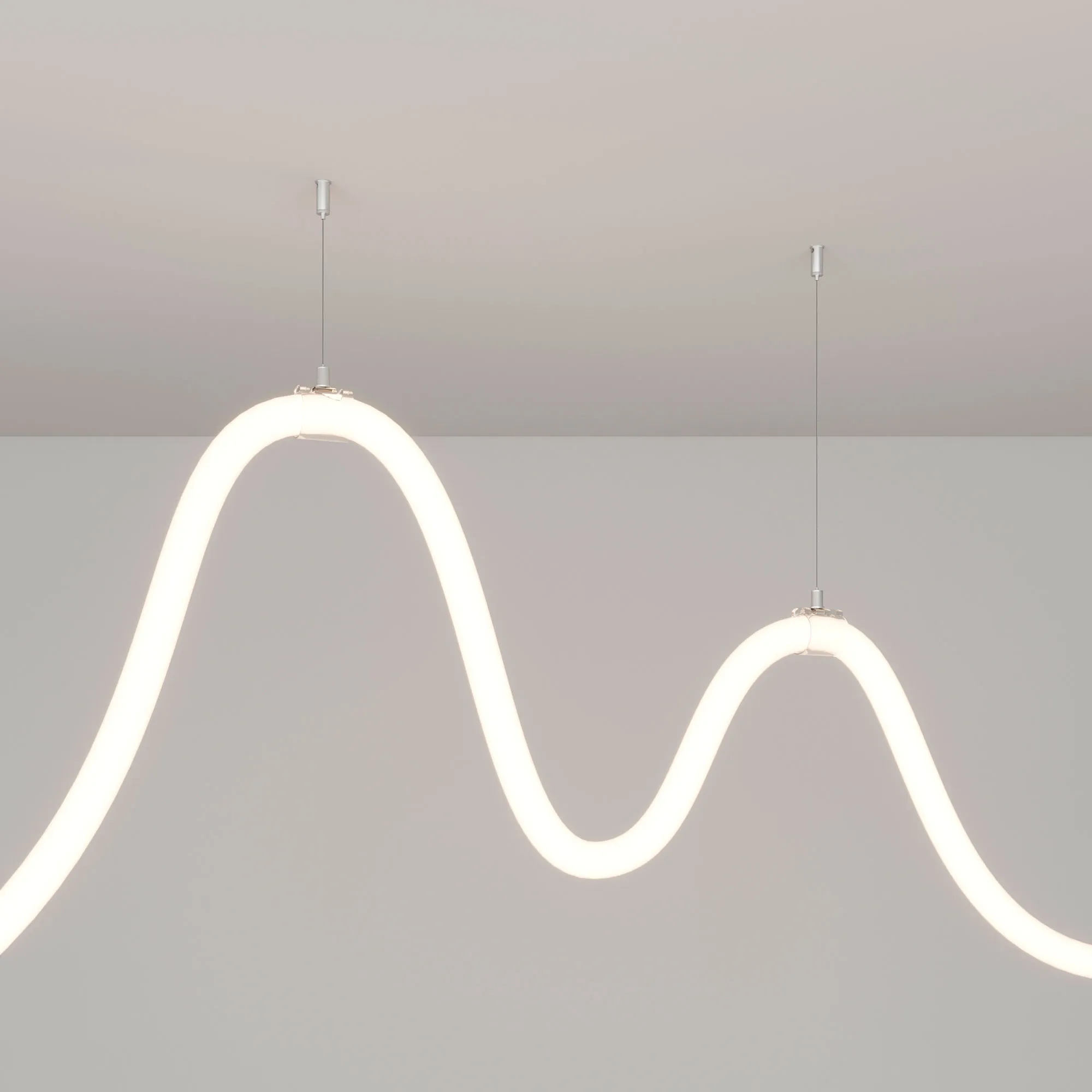 Горизонтальный подвес для герметичной ленты MOONLIGHT-D25. Цвет золотой. Длина тросов 2м, длина горизонтальной трубки - 1м. Подходит для любых потолочных поверхностей. Совместим с прозрачными трубками с боковым выводом кабеля (см.совместимые).