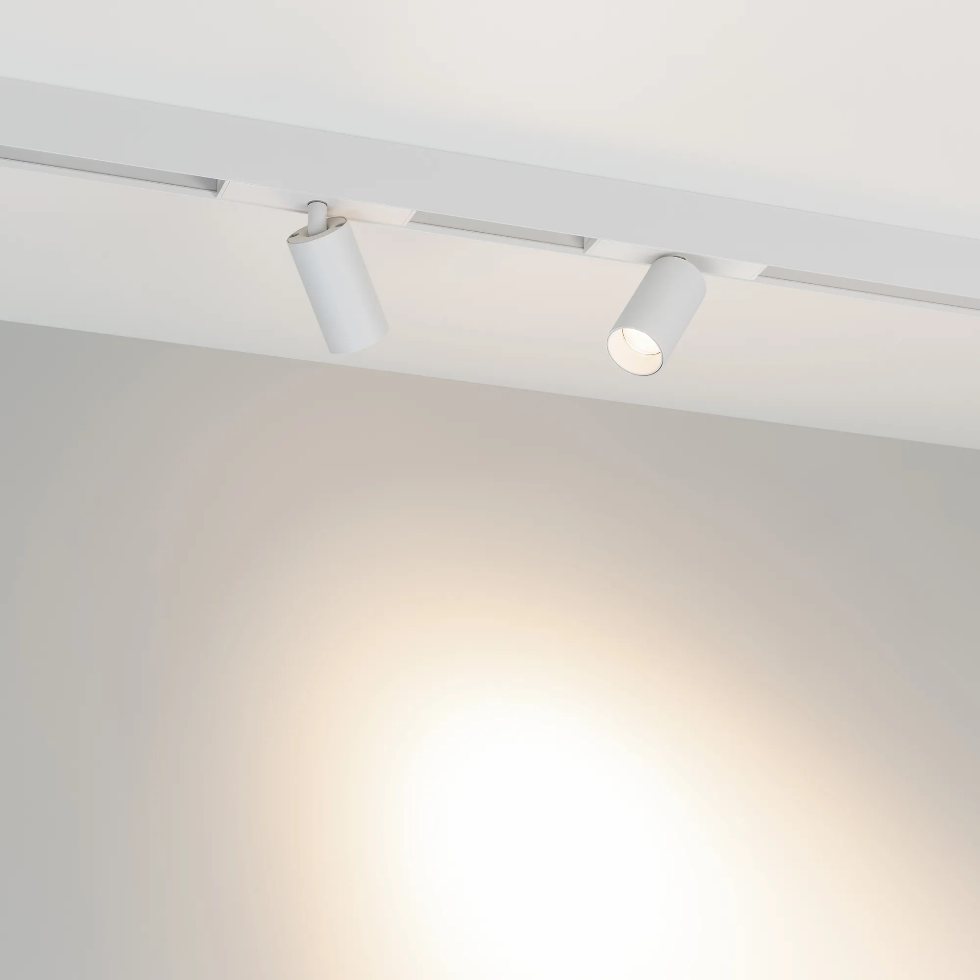 Светильник поворотный для магнитных треков шириной 25 мм, 5 Вт. Цвет свечения ДНЕВНОЙ 4000K, световой поток 350лм, угол 30°, CRI>90. Корпус прямоугольный, металл, цвет белый, IP20. Размеры LxWxH 100x20x95 мм. Входное напряжение DC24V, мощность 5 Вт. Драйвер DС24V/AC230V поставляется отдельно.Диаметр светоизлучающего модуля 35 мм. Диммируется только с 026407, 027633.