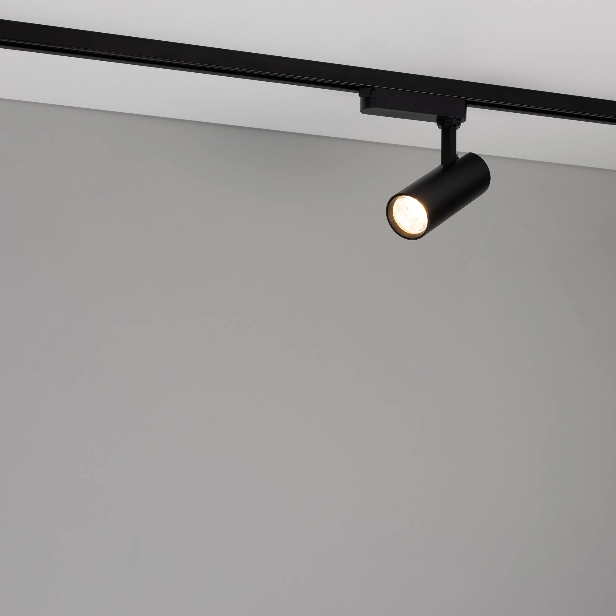 Светильник для треков/шин 2 провода. Мощность 15 Вт, св. поток без решетки honeycomb 1500 лм, 100 лм/Вт, с решеткой honeycomb 990 лм, 66 лм/Вт, дневной 4000 K, CRI>90, угол 55°, напряжение питания 230 В. Черный круглый корпус из алюминия, материал линзы PMMA, степень защиты IP20. Размер: диаметр 60 мм, длина световой части 141 мм. Монтаж на трек 1-фазный. Драйвер встроенный 350 мА 25-40 В, пульсация <5%.