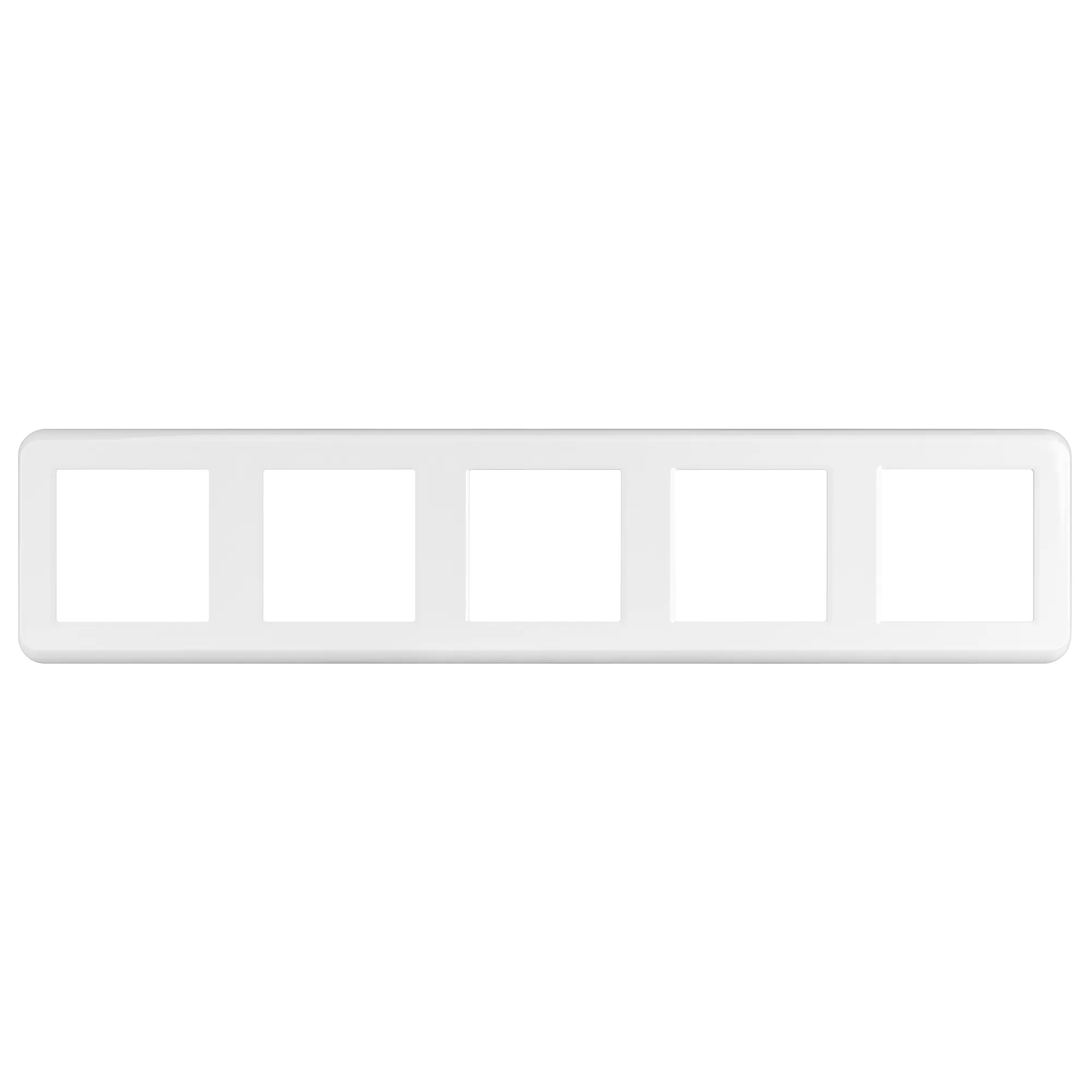 Рамка пластиковая на 5 постов, под встраиваемый механизм (квадрат). Цвет - белый. Ориентации монтажа - горизонтальная.