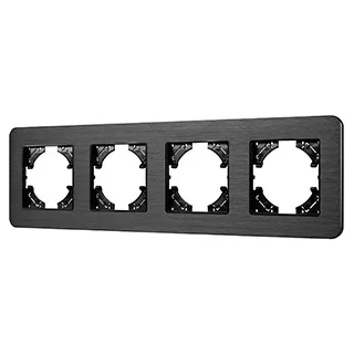 Рамка алюминиевая на 4 поста, под встраиваемый механизм. Цвет - черный. Среднего уровня герметичности IP20. Ориентация монтажа - горизонтальная (основным ориентиром служат посадочные выступы для накладки механизма).