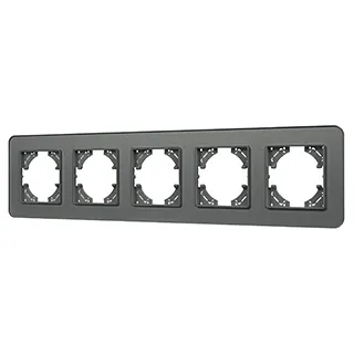Рамка стеклянная на 5 постов, под встраиваемый механизм. Цвет - серый с Soft-Touch покрытием. Среднего уровня герметичности IP20. Ориентация монтажа - горизонтальная (основным ориентиром служат посадочные выступы для накладки механизма).