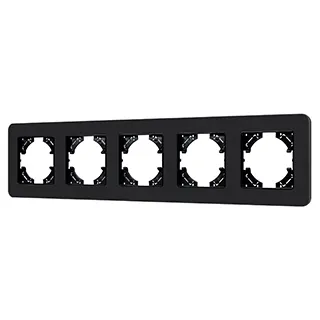 Рамка стеклянная на 5 постов, под встраиваемый механизм. Цвет - черный с Soft-Touch покрытием. Среднего уровня герметичности IP20. Ориентация монтажа - горизонтальная (основным ориентиром служат посадочные выступы для накладки механизма).