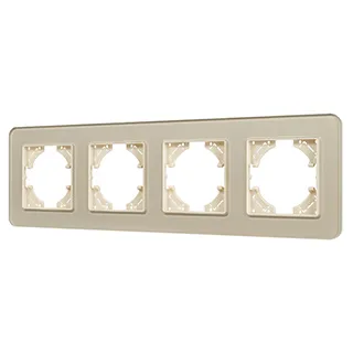 Рамка стеклянная на 4 поста, под встраиваемый механизм. Цвет - золотой с Soft-Touch покрытием. Среднего уровня герметичности IP20. Ориентация монтажа - горизонтальная (основным ориентиром служат посадочные выступы для накладки механизма).