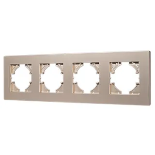 Рамка пластиковая на 4 поста, под встраиваемый механизм. Цвет - золотой. Среднего уровня герметичности IP20. Ориентация монтажа - горизонтальная (основным ориентиром служат посадочные выступы для накладки механизма).