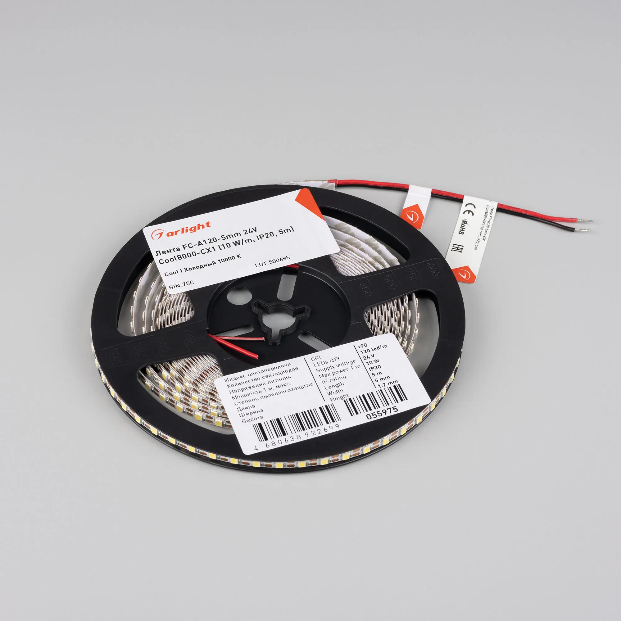 Лента FC-A120-5mm 24V Сool8K-CX1 (10 W/m, IP20, 5m) (Arlight, резка 1 светодиод)