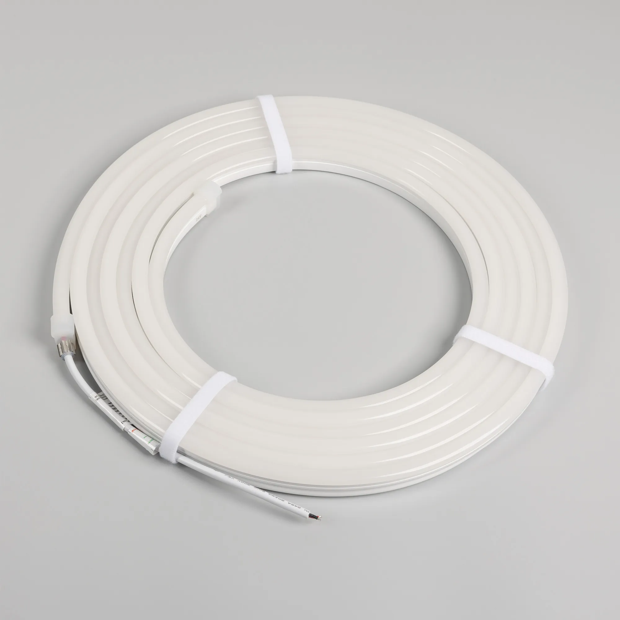 Гибкая герметичная лента (неон серии HALO), сечение 10×17 мм. Светодиоды SMD 2835 160 шт/м. Цвет свечения ХОЛОДНЫЙ БЕЛЫЙ (6000 К), индекс цветопередачи CRI>80, световой поток 500 лм/м, угол излучения 140°. Мощность 10 Вт/м, питание 24 В. Класс пылевлагозащиты IP67. Размеры 5000×10×17 мм. Мин. отрезок 50 мм. Горизонтальный изгиб SIDE, минимальный радиус изгиба 75 мм. Вывод кабеля с одной стороны. Катушка 5 м. Цена за 1 м. Гарантия 3 года.