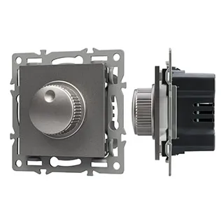 Механизм регулировки света на 1 пост, с суппортом из алюминия. Цвет - серый. Без фронтальной рамки. Уровень пылевлагозащиты - IP20. Механизм устанавливается в стандартный круглый подрозетник. Максимальная нагрузка 300 Вт только для ламп накаливания и галогенных, 100 Вт только для энергосберегающих и светодиодных ламп.