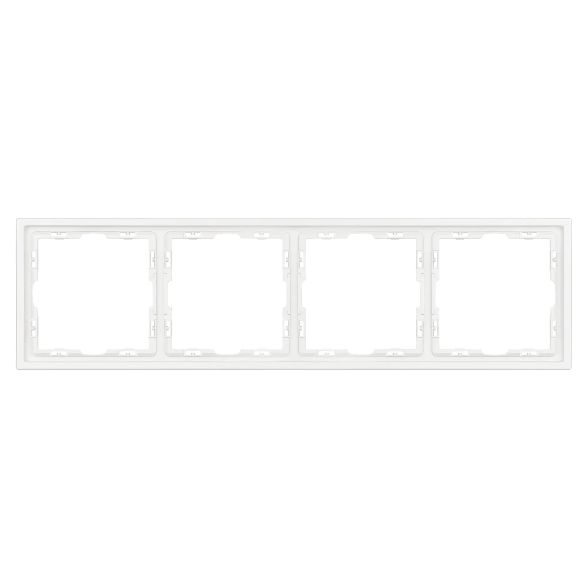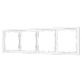 Рамка пластиковая на 4 поста, под встраиваемый механизм. Цвет - белый, с Soft-Touch покрытием. Среднего уровня герметичности IP20. Ориентация монтажа горизонтальная.