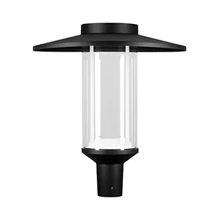 Венчающий светодиодный светильник. Мощность 50 Вт, св. поток 6330 лм, 129 лм/Вт, тёплый 3000 K, CRI>80, угол 150х30°, напряжение питания 230 В. Черный корпус из алюминия, экран закаленное стекло, степень защиты IP65. Размер: диаметр 550 мм, высота 640 мм. Монтаж на вертикальную опору диаметром 76 мм.