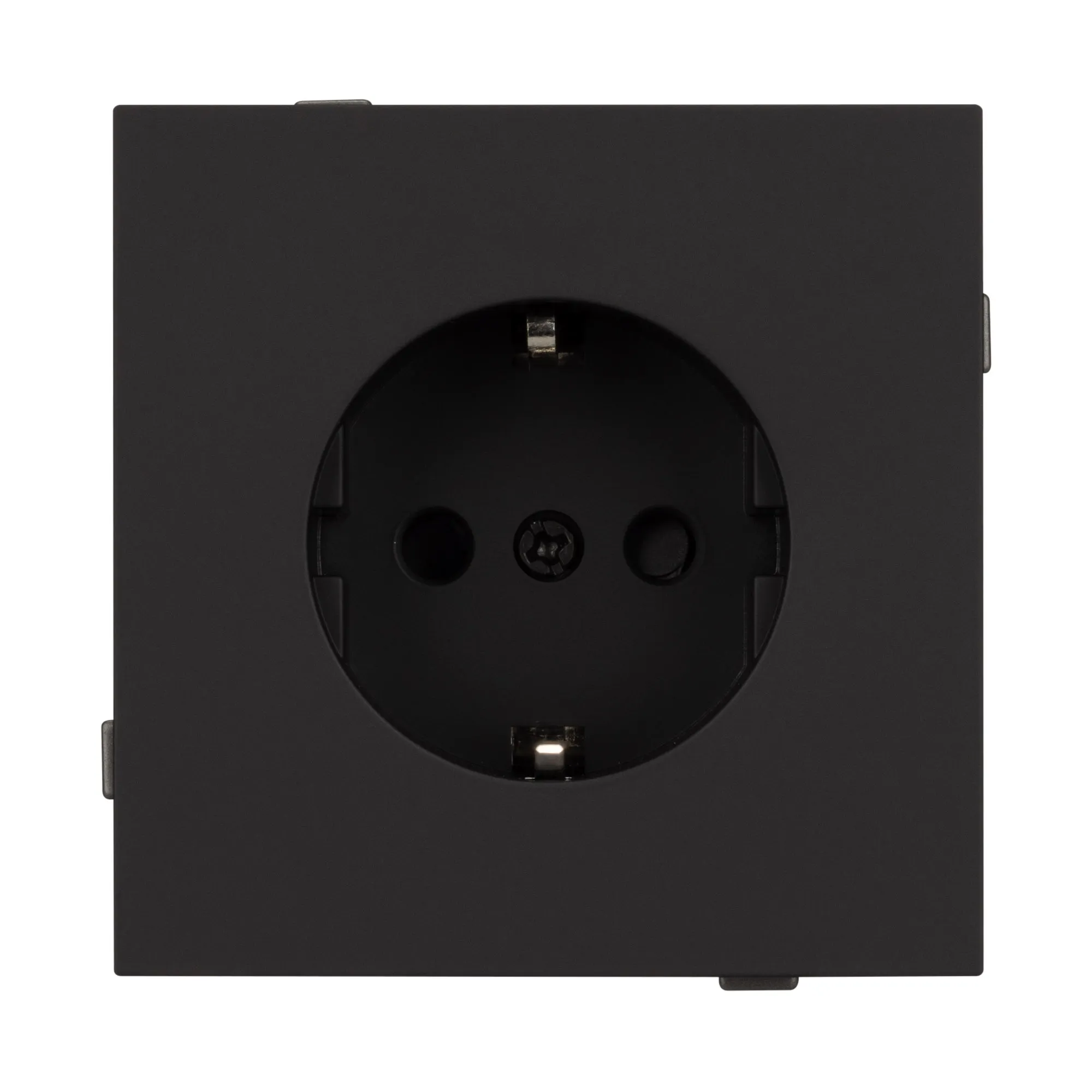 Механизм розетки с заземлением на 1 пост. Цвет - черный, с Soft-Touch покрытием. Без фронтальной рамки. Уровень пылевлагозащиты IP20. Розетка устанавливается в стандартный подрозетник круглого сечения диаметром 60мм.