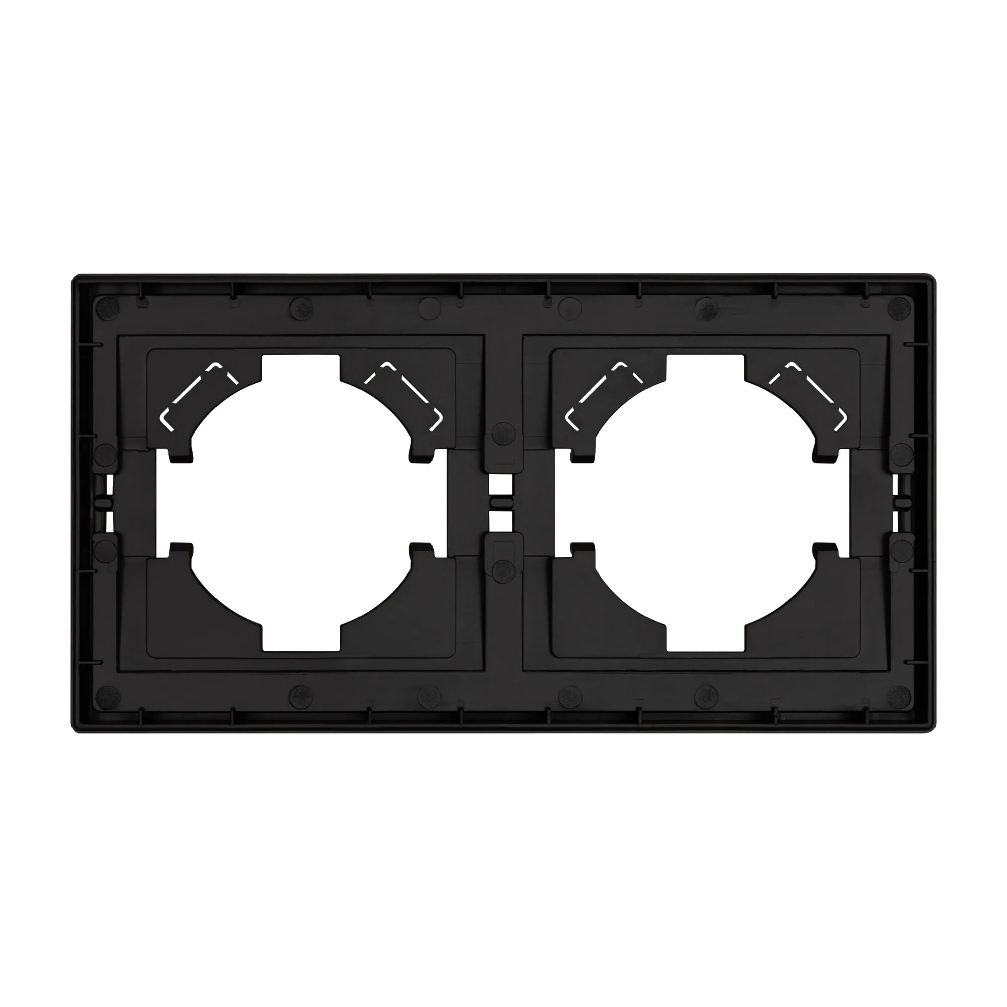 Рамка пластиковая на 2 поста, под встраиваемый механизм. Цвет - черный, с Soft-Touch покрытием. Среднего уровня герметичности IP20. Ориентация монтажа горизонтальная.