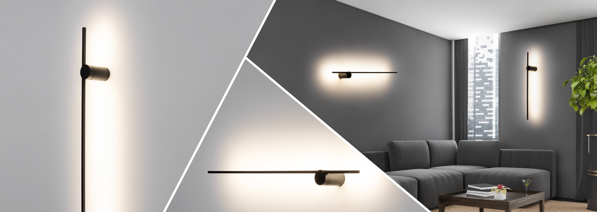 Черные и белые фигурные корпуса длиной 600 или 900 мм легко вращаются на 355° относительно основания.